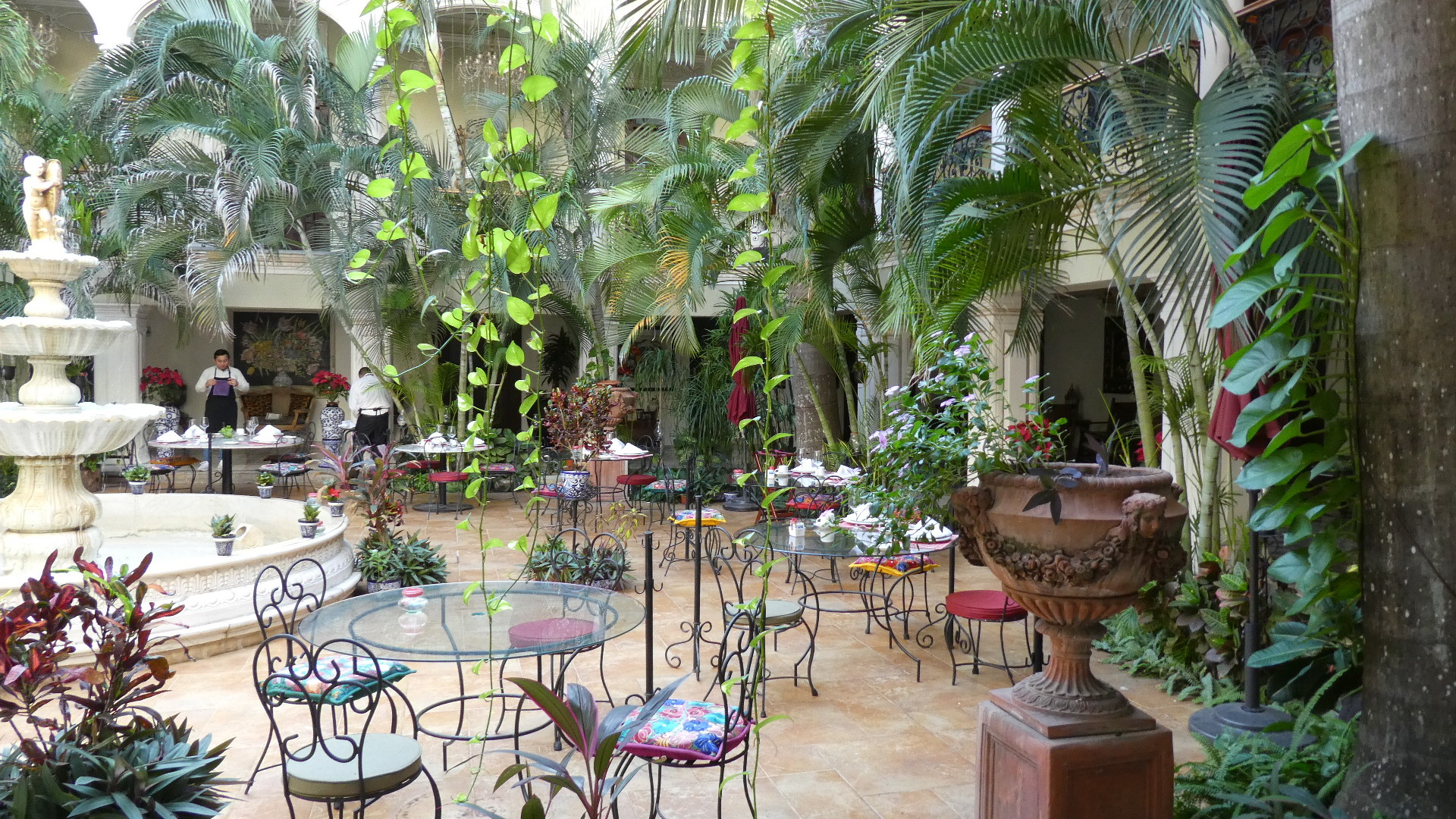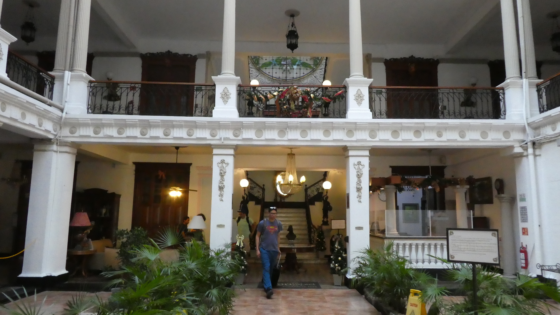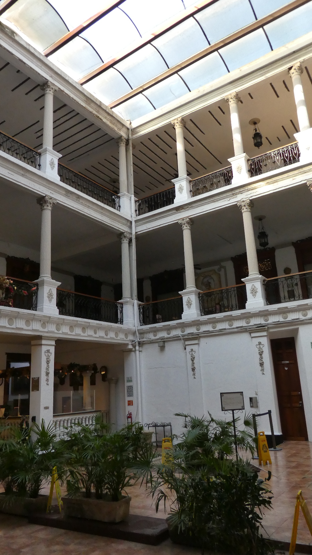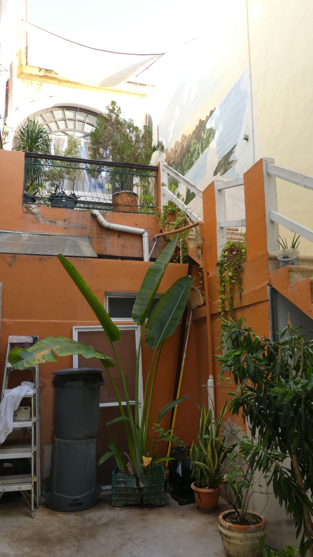 Our building has long fallen on hard times, and has been chopped up to create the tiny hotel rooms. But you can still see the high ceilings, stone steps, and the earthenware floor tiles that go so well with plants.
