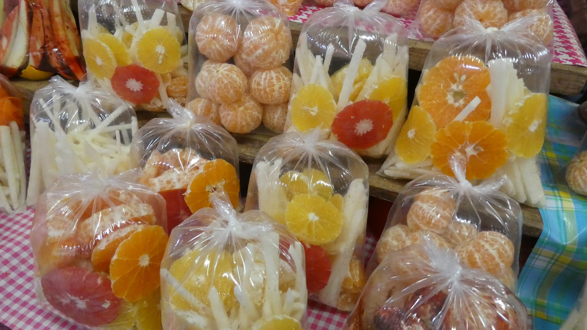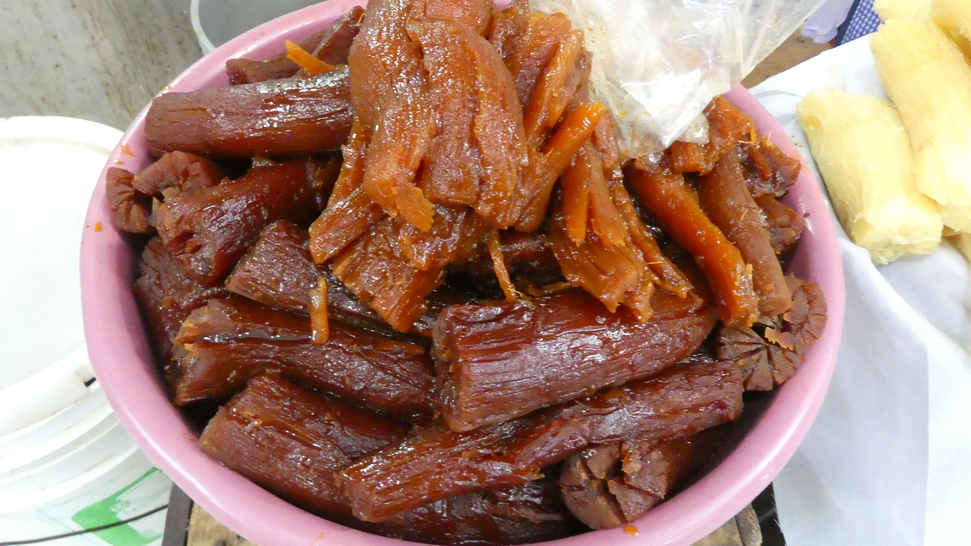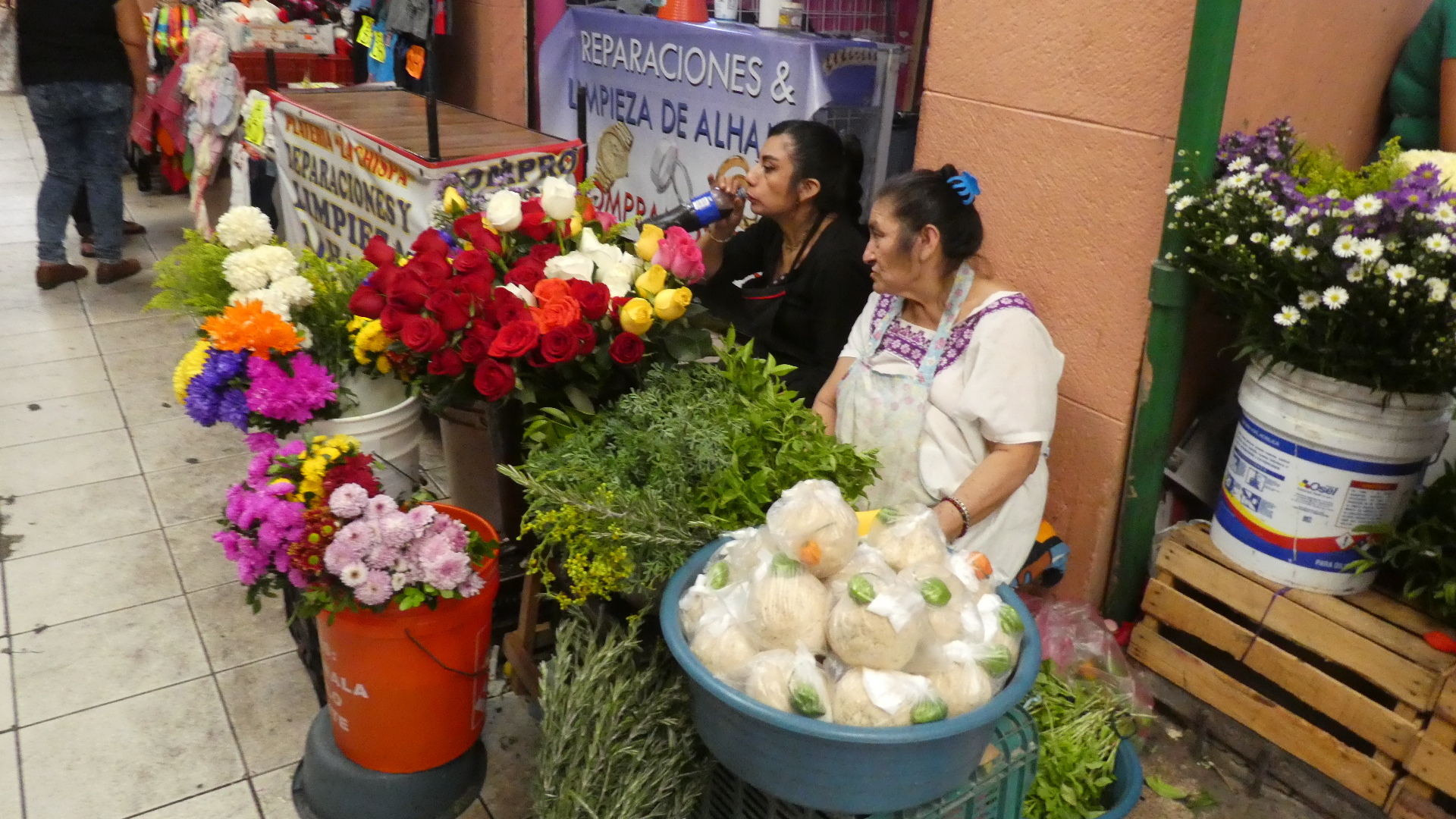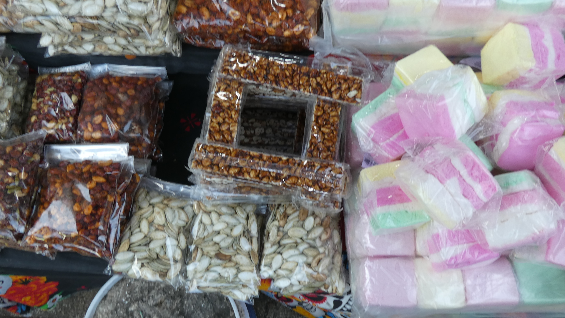 Suitably refreshed, we now charged into the more exciting (or excited) part of downtown. There were two adjacent markets mentioned by Google and others, and we walked to where they were supposed to be. We didn't find, at first, any large covered market building or outdoor arrangement of stalls. Rather, the city blocks abounded in little stores or street stalls. To boot, it was a long time before we saw so much as a banana or a fish. So we walked around and around, looking. Eventually we did find fish, and fruits, and vegetables, but right now don't ask me exactly where, or how. It was all in among warrens and alleys and buildings, but it's not like there was a sign or anything!