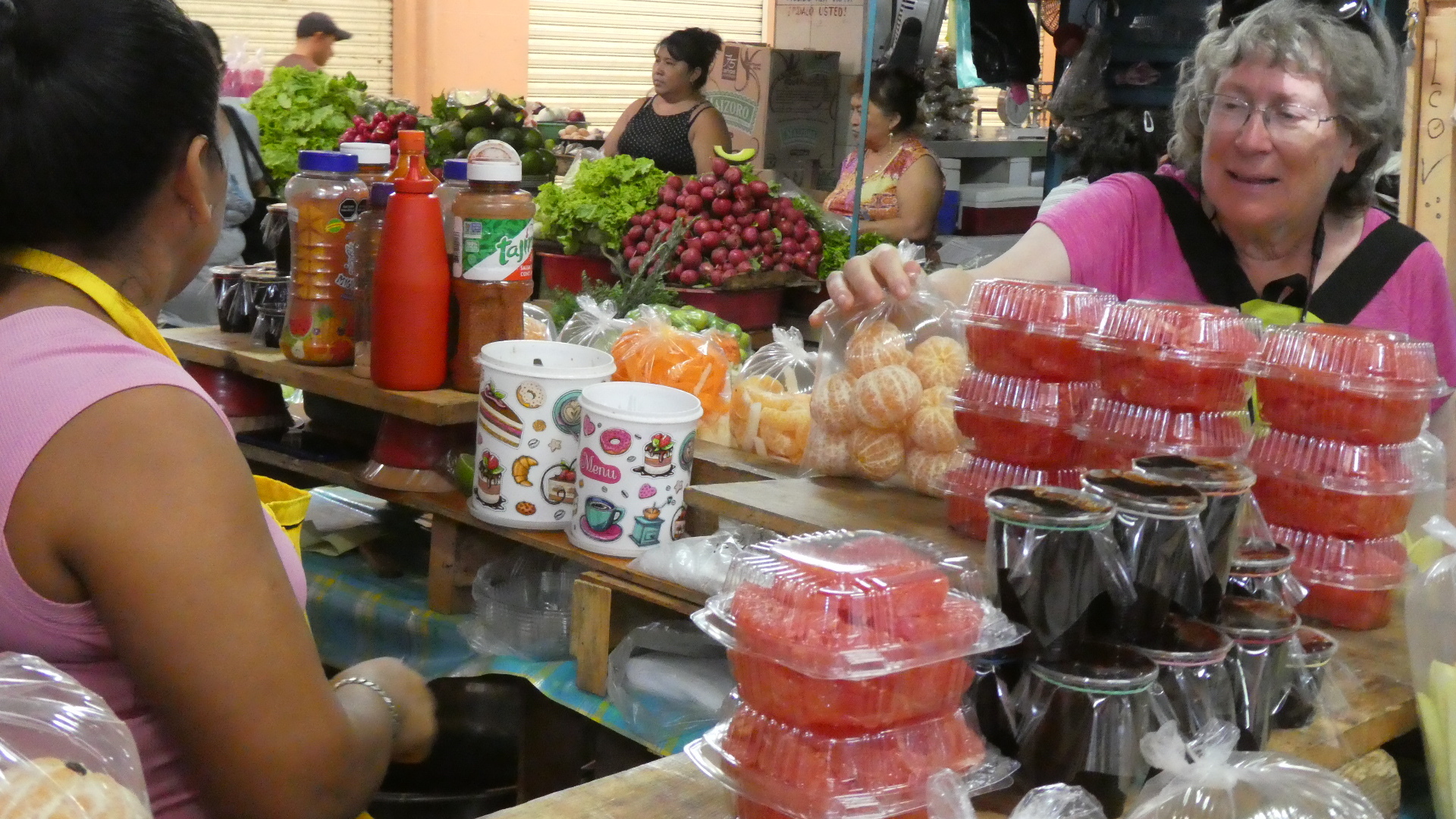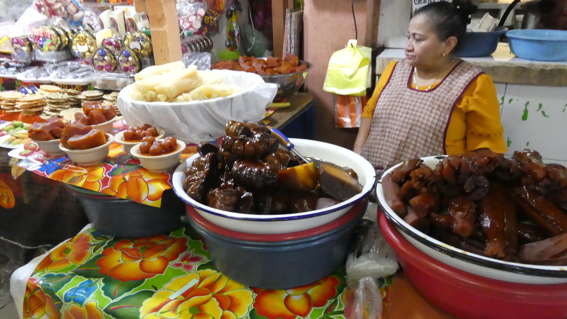 Next we turned around and headed for the depths of the "market" areas. Here there were suitable amounts of crowding and chaos. But we had become so calm and happy from the morning that we thoroughly enjoyed the chaos of the markets, finding a ton of interesting things, enjoying a meal, and talking to the people. The net effect of it all is that we like Merida a lot now. Here we go...