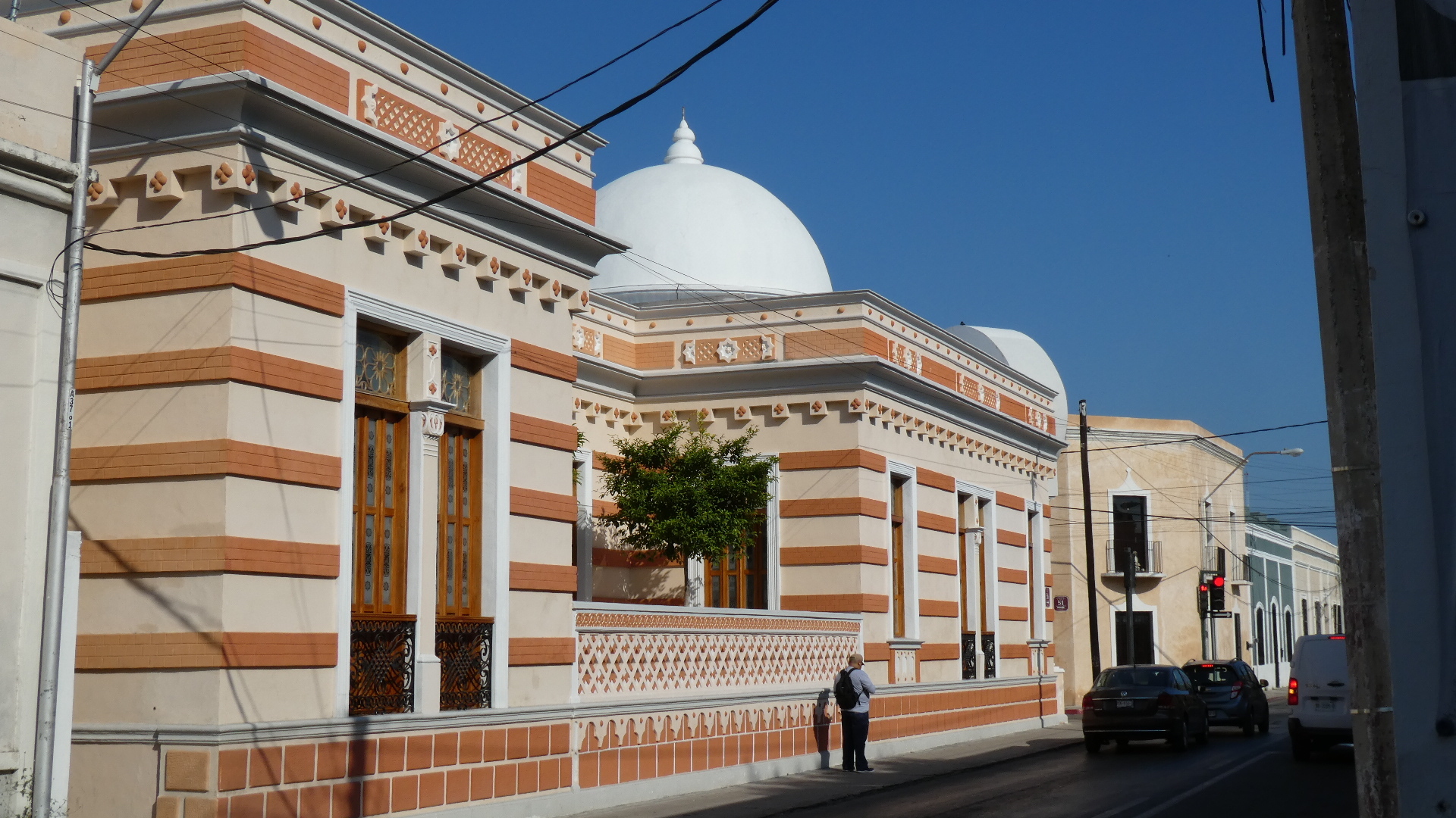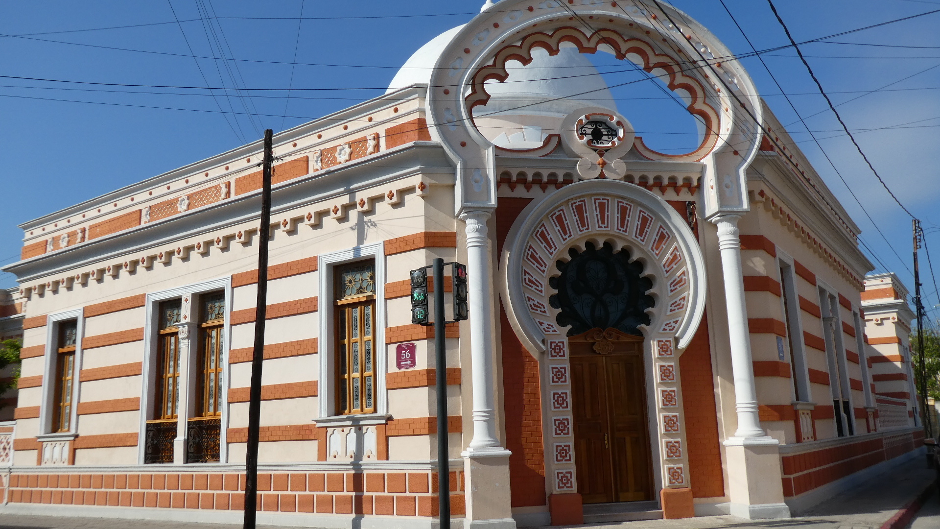 Down at the end of the street above is a stripey building that is very unique. It's called the Moorish House. It was built in 1909 by a guy from Pontevedra, Spain, just as a residence. But at one point it housed the US Consulate. It's really noticeable, for its Moorish and French architecture.