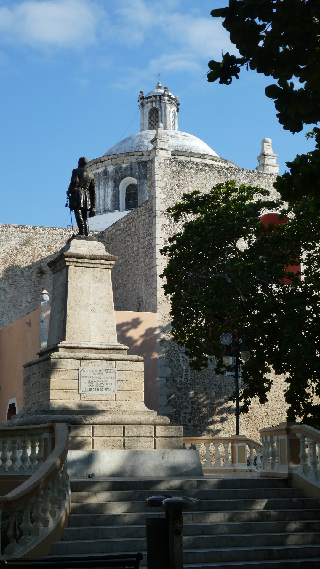 Visible from the park is the Church of the Third Order of Jesus. An interesting fact that we read about this is that it is the first Jesuit church in Yucatan, built 1618, and that it was built with blocks from a Mayan temple, such that some temple carvings can still be seen in its walls.