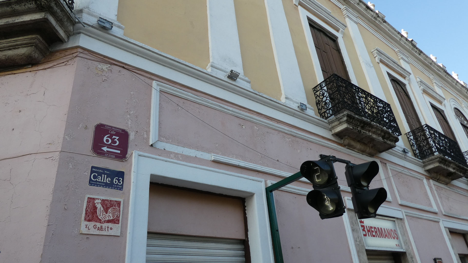We left the Zocalo and set off in the direction of the cathedral, but bypassing the Montejo house, which was not open as yet. Literally every building around the large square is historic, and they benefit from nearby plaques. For example, the Little Rooster house: