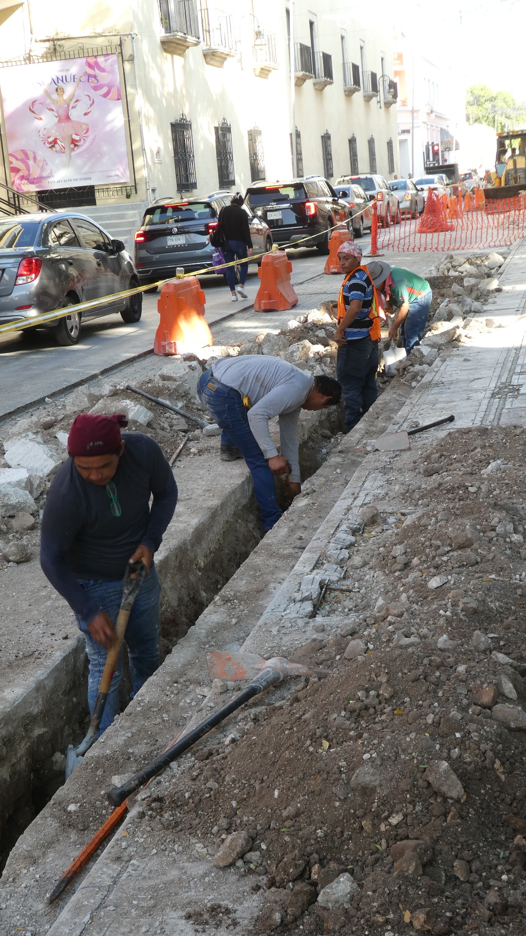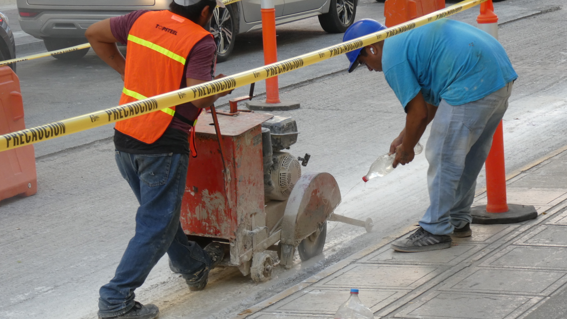 Along one street some roadwork was in progress. At first we thought it noteworthy how manual work with shovels was being relied on. But soon we saw some power equipment in use. Even so, a key to having the thing work right was water being squirted from a Coke bottle.