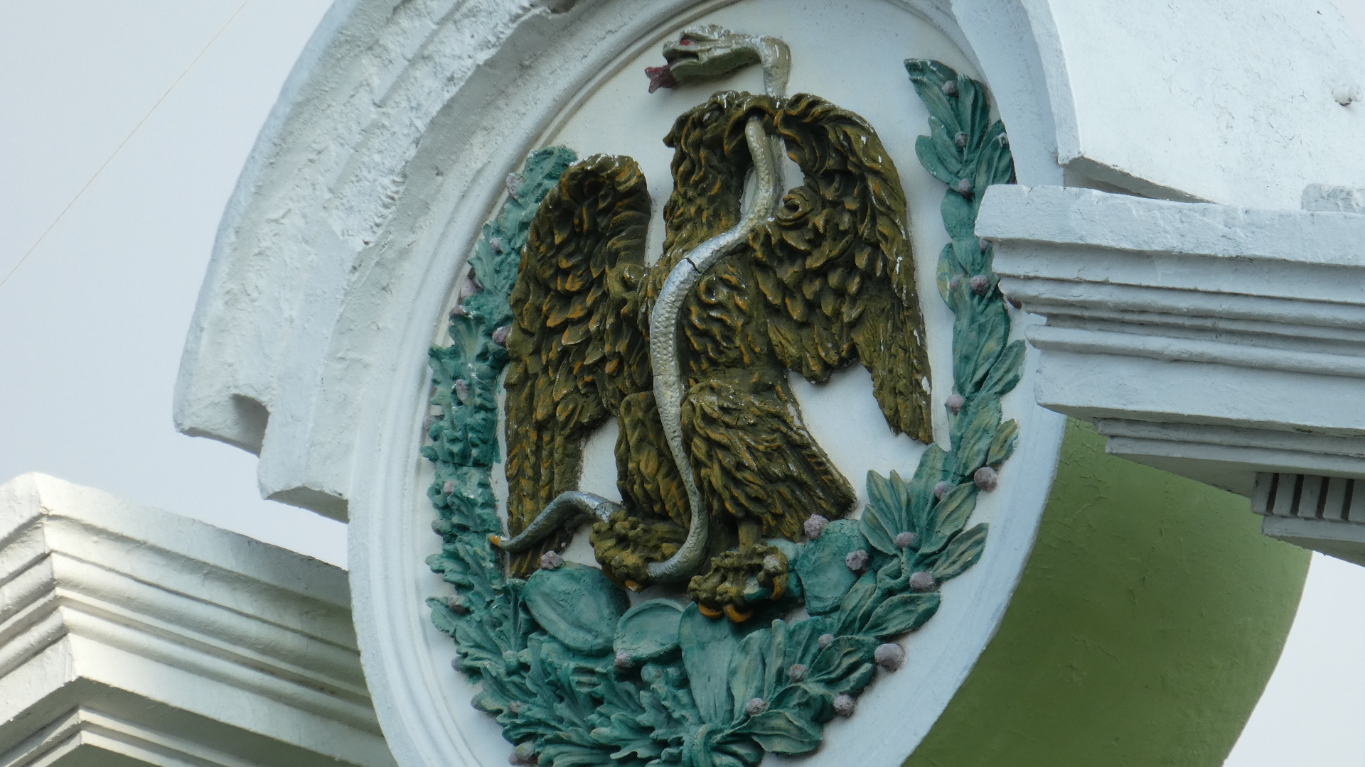 Above the door is another eagle, and a snake. This is again a version of the Mexican state seal.