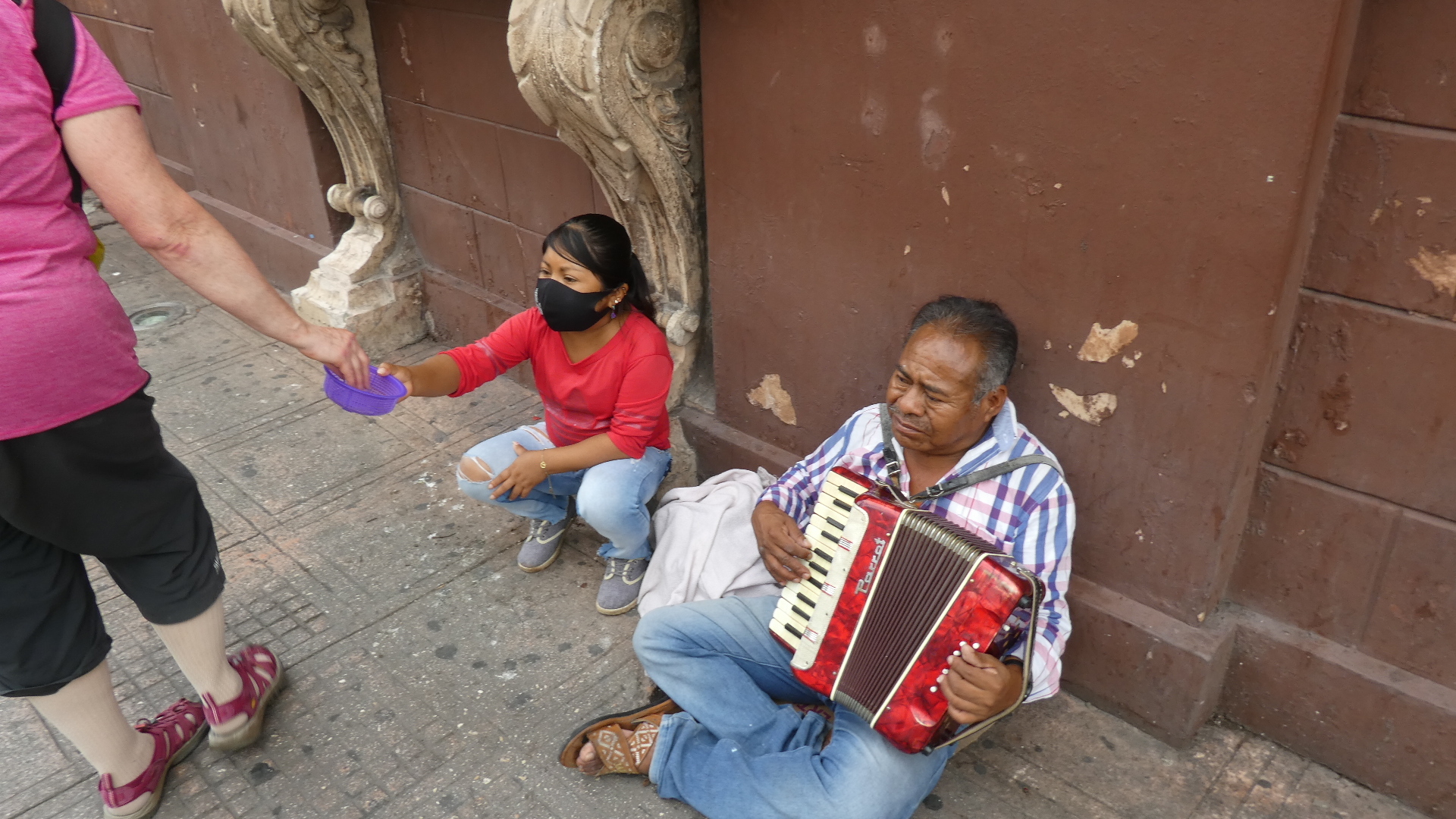 We struck off from the main square, strolling over to nearby "Hidalgo Park". Along the way were more historic houses, like the "Pedz Balam House". As the plaque says, there are buildings around with materials that are from as early at the 3rd century. This one has a deliberate gap in the stucco so the old blocks can bee seen.