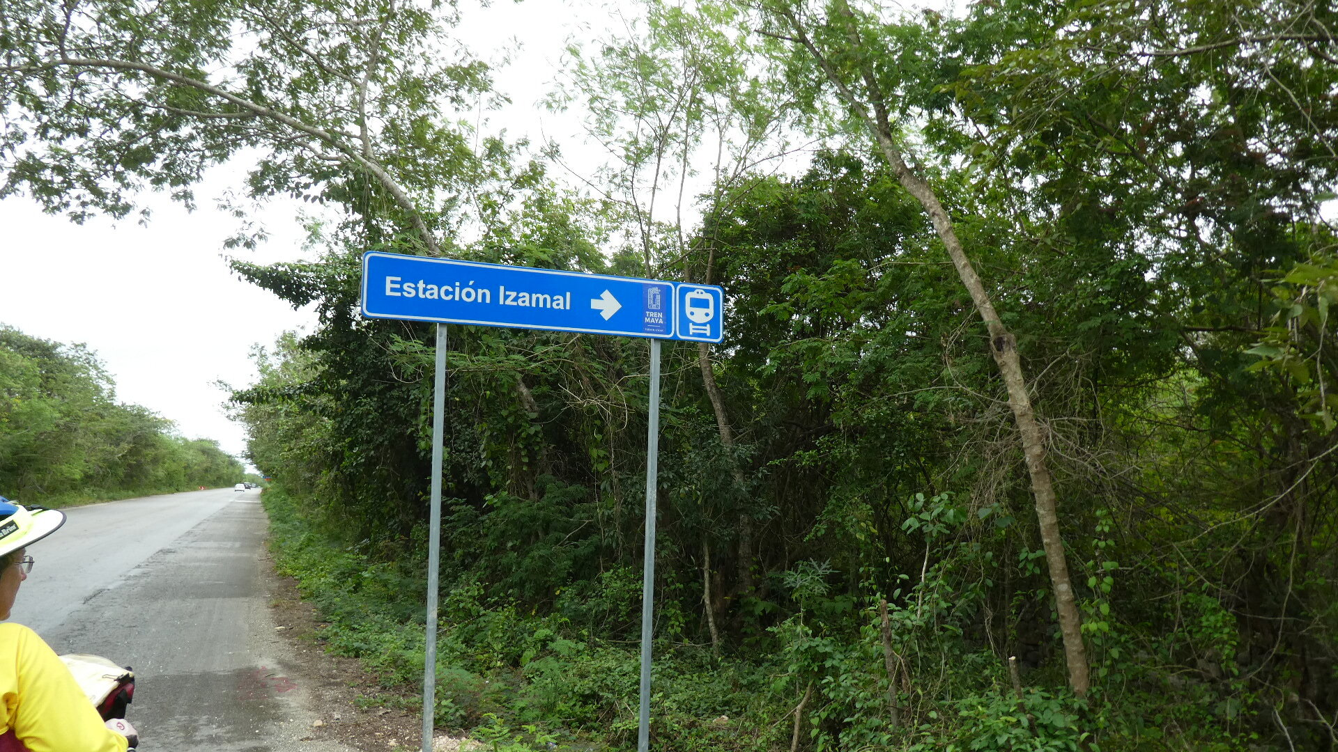 Now we had a straight shot to Izamal. We could see we were drawing close when we came to a sign for the Izamal station of the Mayan Train. The train project has been highly controversial, because it involves pushing track through the jungle. We are not such which parts might or might not be currently in operation.