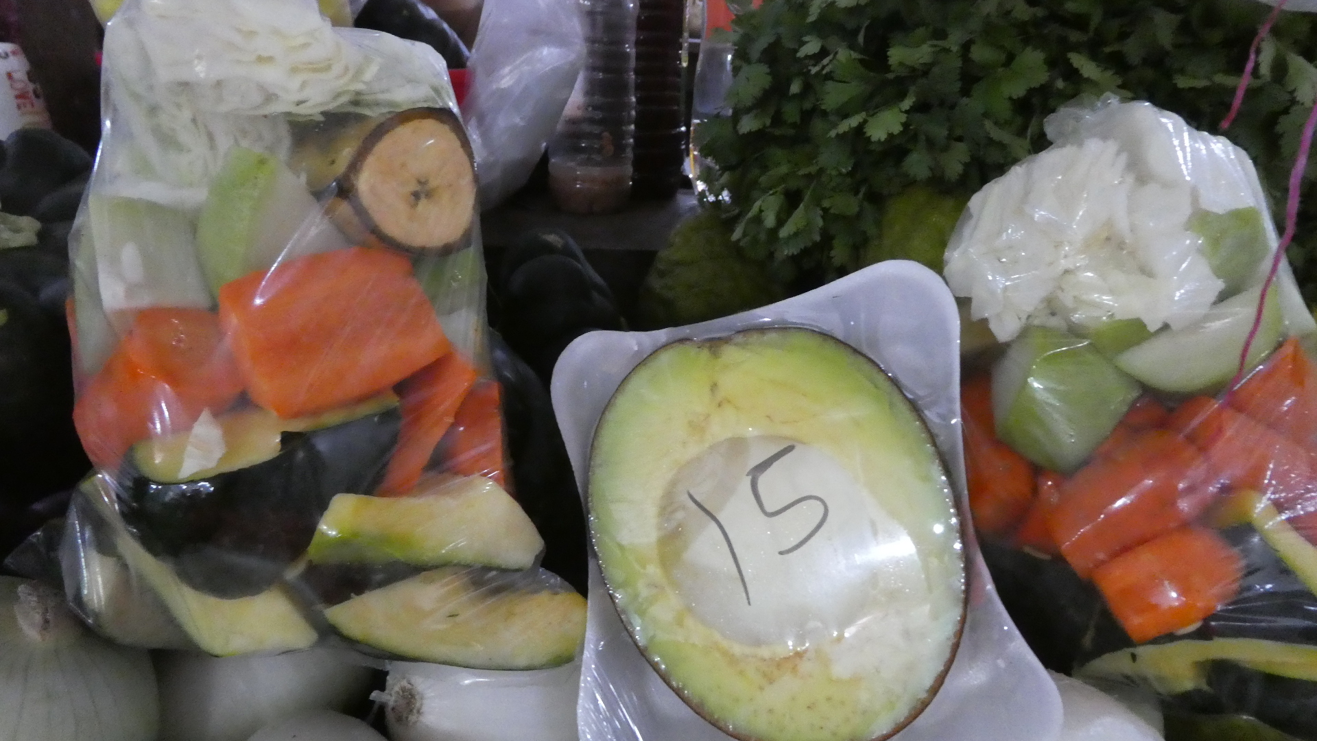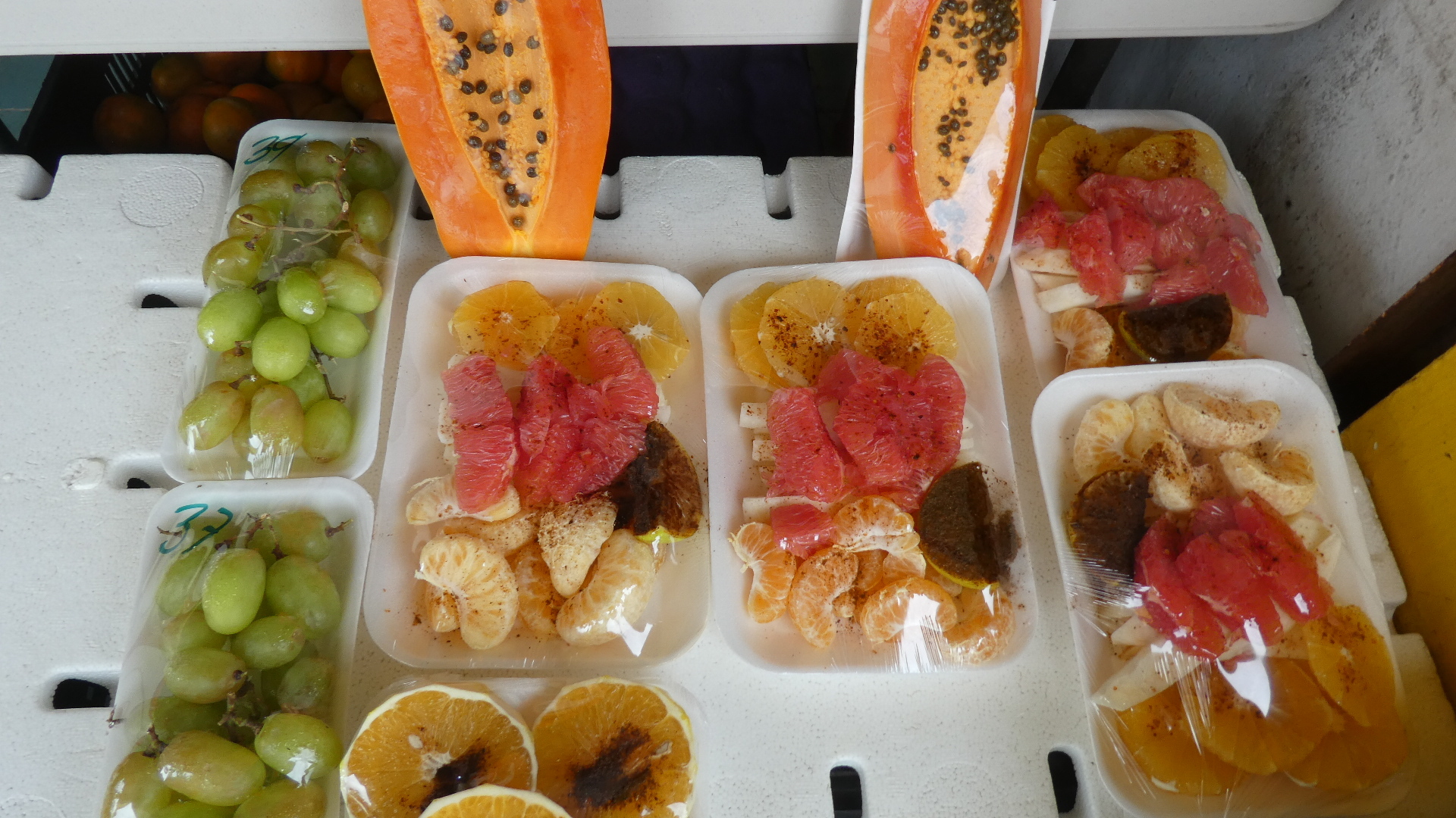 We discovered the market in Motul, and found it really nice. There was again lots of fruit, including our favorite trays of fruit salad.