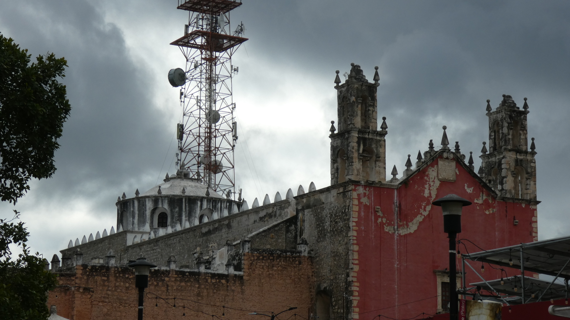 Especially in Europe, I observe the design of church steeples, wondering which might be most effective in conducting prayers to heaven. I am assuming that this is the reason for steeples at all, although theologians or church designers might have a different answer. I do think my thinking has some merit, though, because it aligns with churches being built with lofty arches or domes. The idea is that heaven and God are in the general direction of up. Anyway, I thought that here in Motul, a church with not only two steeples but also a microwave tower was pretty advanced.