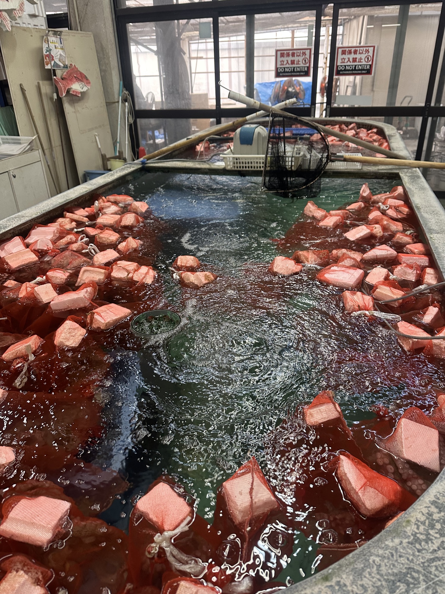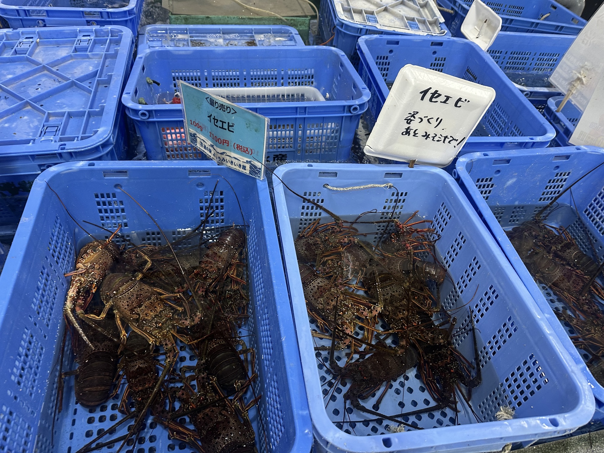 We stopped at a Michi No Eki after descending from the first bridge and had a late lunch. Attached to the restaurant was a big seafood market, filled with tanks brimming with live sea creatures.