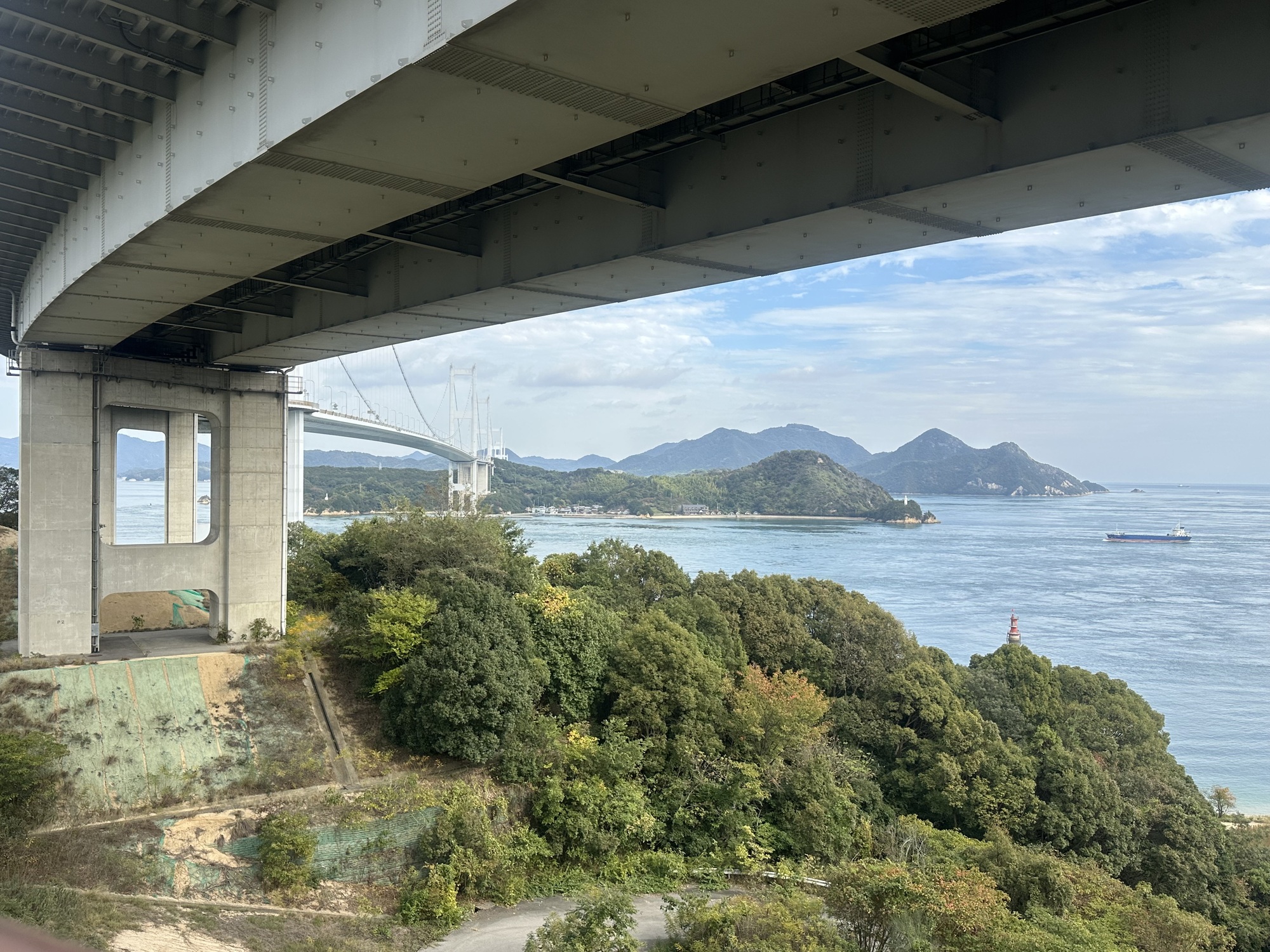 Once past Imabari we felt like the day was really getting started: the goodbye to Shikoku and the hello-again to Honshu, once we’d zoomed over these bridges and through these islands.