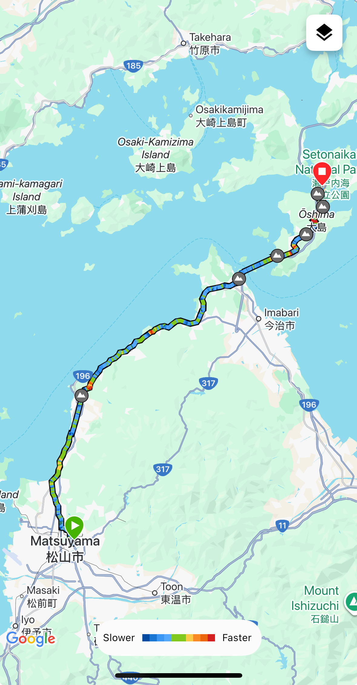 The ride to Imabari was pleasant— mostly coastal, with some inland hills to remind our legs that they had a job to do.