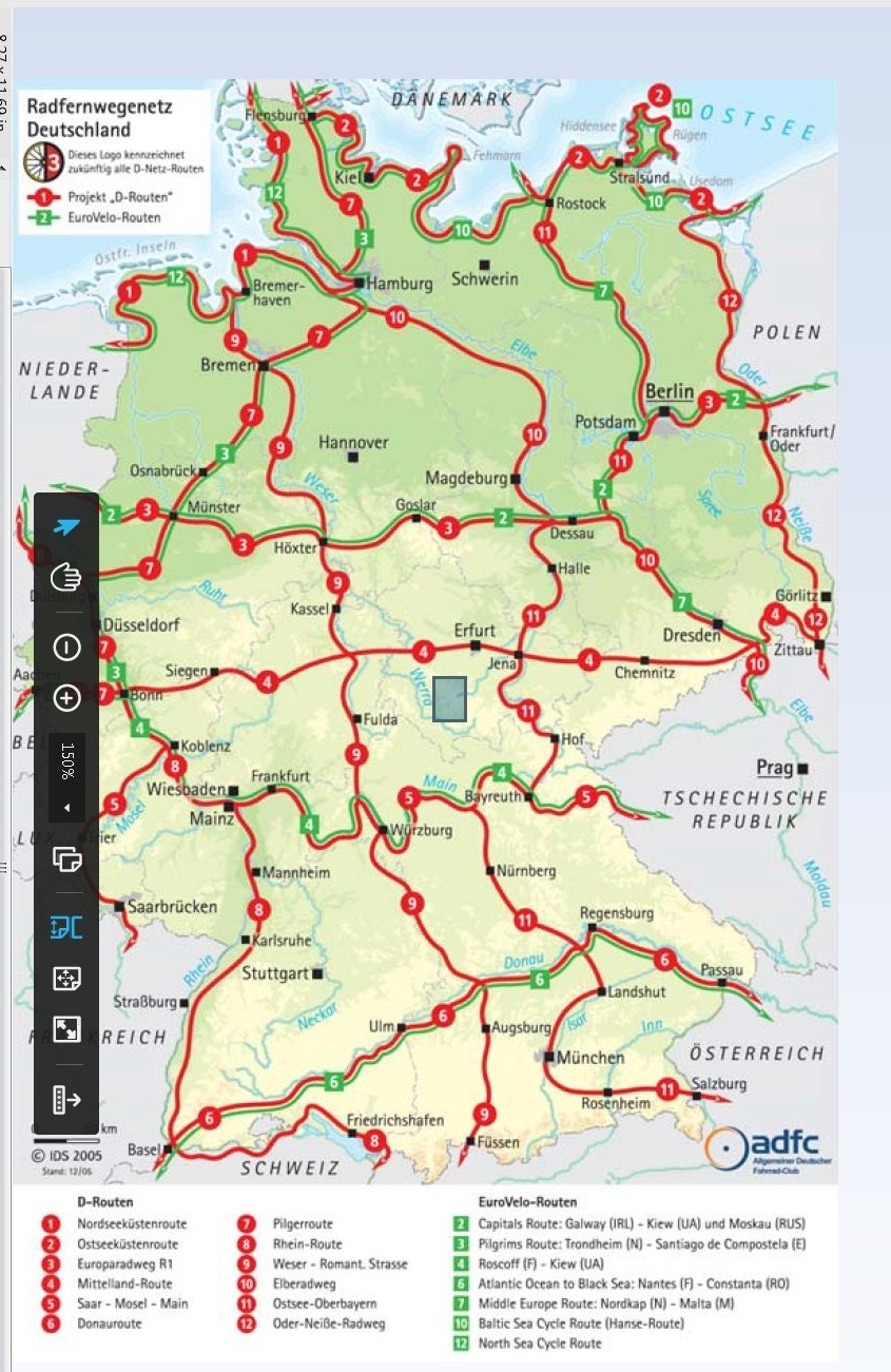 Jon Ayling in Bohemian Rhapsody dealt with this in his page "Avoiding the Big Red Cycle Routes", where the Saale radweg tried to run him ragged.