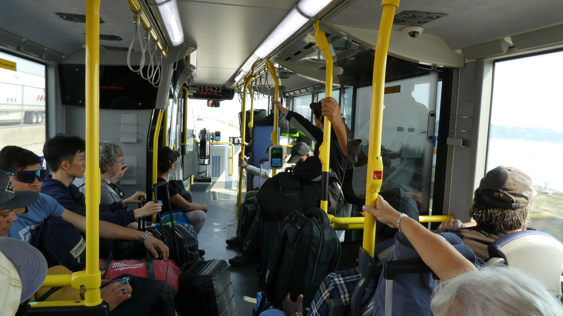 The bus from ferry to airport also had a long line of people, but we were glad to find them in good spirits and cooperating with each other.