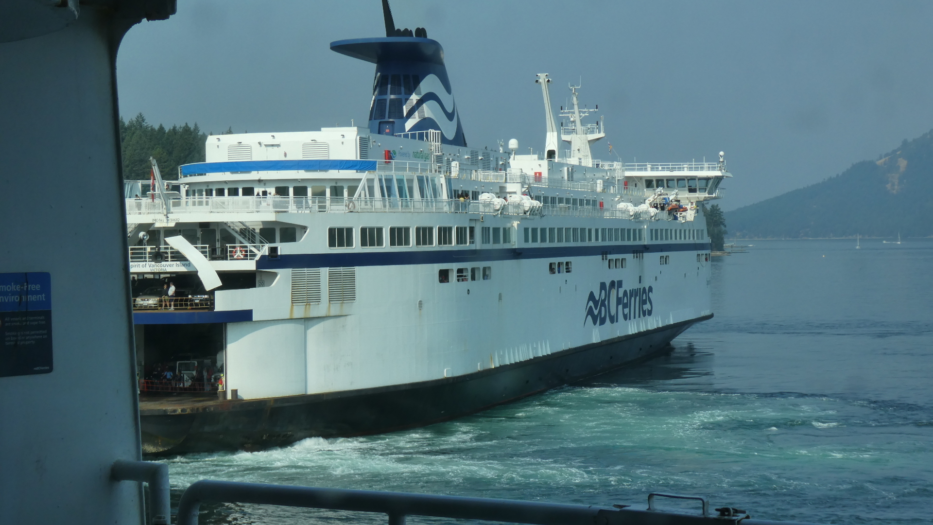 We half expected BC Ferries to cancel the sailing we would need to get to the plane at Vancouver on time. That's because their boats (made in Germany) have been breaking on them of late, resulting in lots of cancellations. This time they didn't cancel, but their 10 o'clock sailing was 42 minutes late. That was in fact a slight advantage, because we got on that, rather than our targeted 11 o'clock. While pondering the possibility that they would cancel, last night, we considered taking a taxi to the airport here and flying to Vancouver, if necessary. But the airlines had seen the Labour Day weekend coming, and had tripled the prices! Gulp.