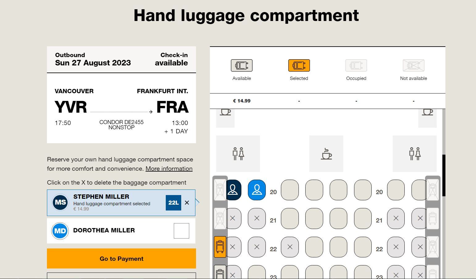 We phoned Condor customer support (yet again) and got the customary semi-hostile response to our semi-hostile question "are you guys serious?". Net result, we have paid them another 60 euros for seats and storage reservations, without even knowing if we will get any benefit from it.