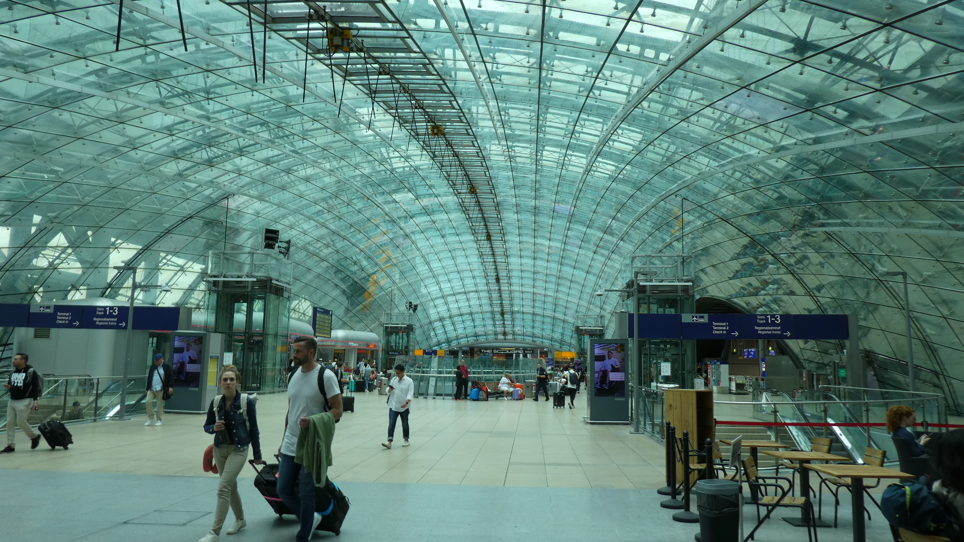We had allowed two hours to get from the plane in Frankfurt to the train that would take us to Leipzig, where our friend Juergen would pick us up. Since the train station is right at the airport, getting off the plane and to the train would take only about half an hour. But Condor contrived to arrive an hour and fifty minutes late. That left us no practical way to get our train. Interestingly, passenger rights legislation provides for compensation if a flight is delayed by more than two hours. Condor came in at one hour fifty minutes, so they were just lucky, or they knew the legislation.