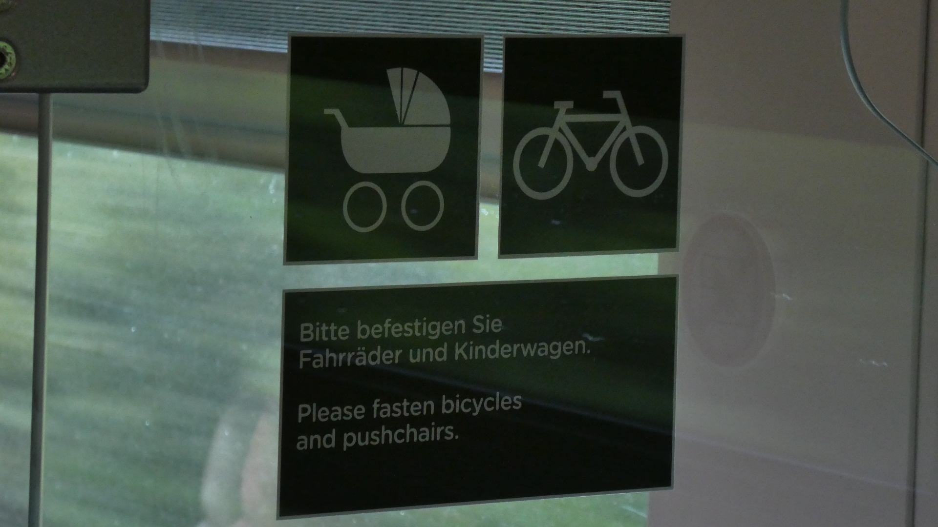 "Nice" conductor lady now reappeared, and tried to explain to us that the precautions were needed for safety. So I showed her my photo of the hook-free bikes in the previous train, reminding her that this was also a Deutsche Bahn conveyance. This is what I showed her: