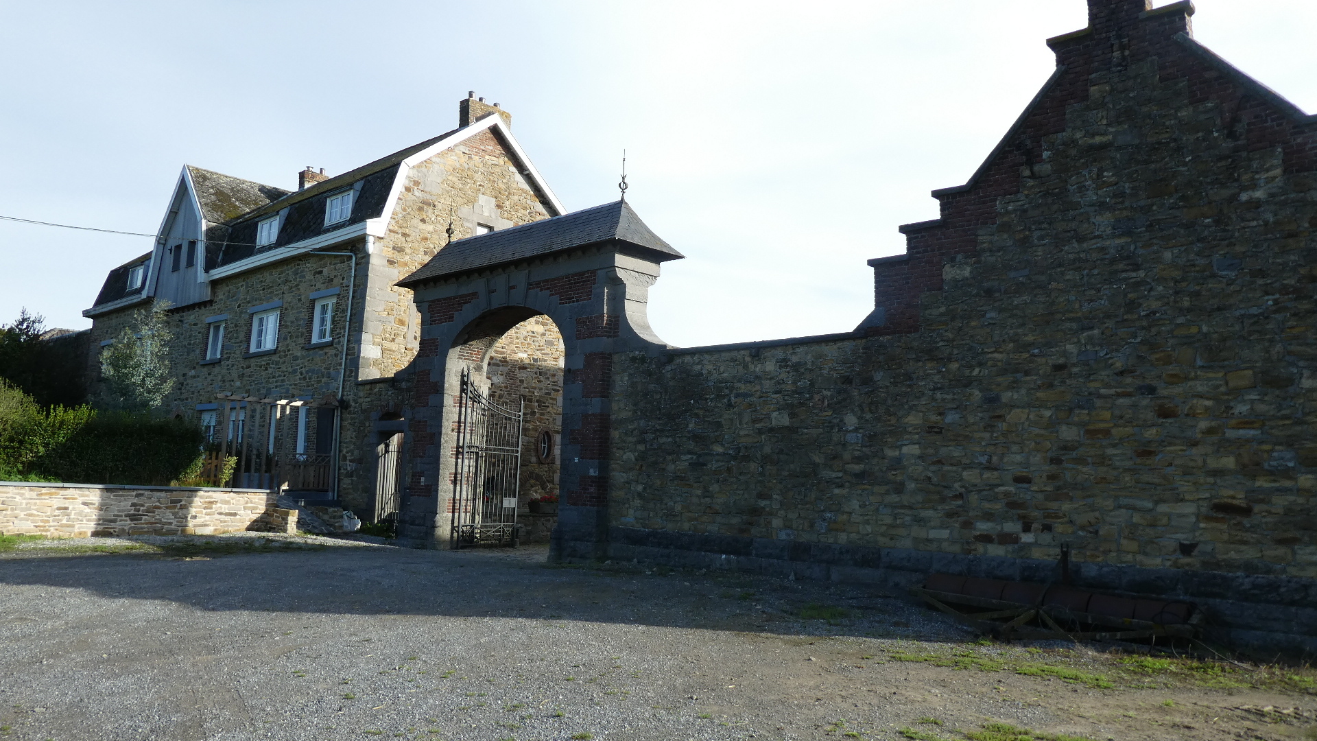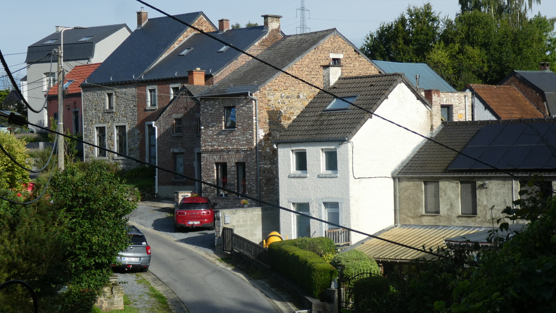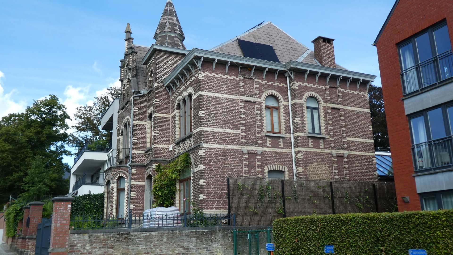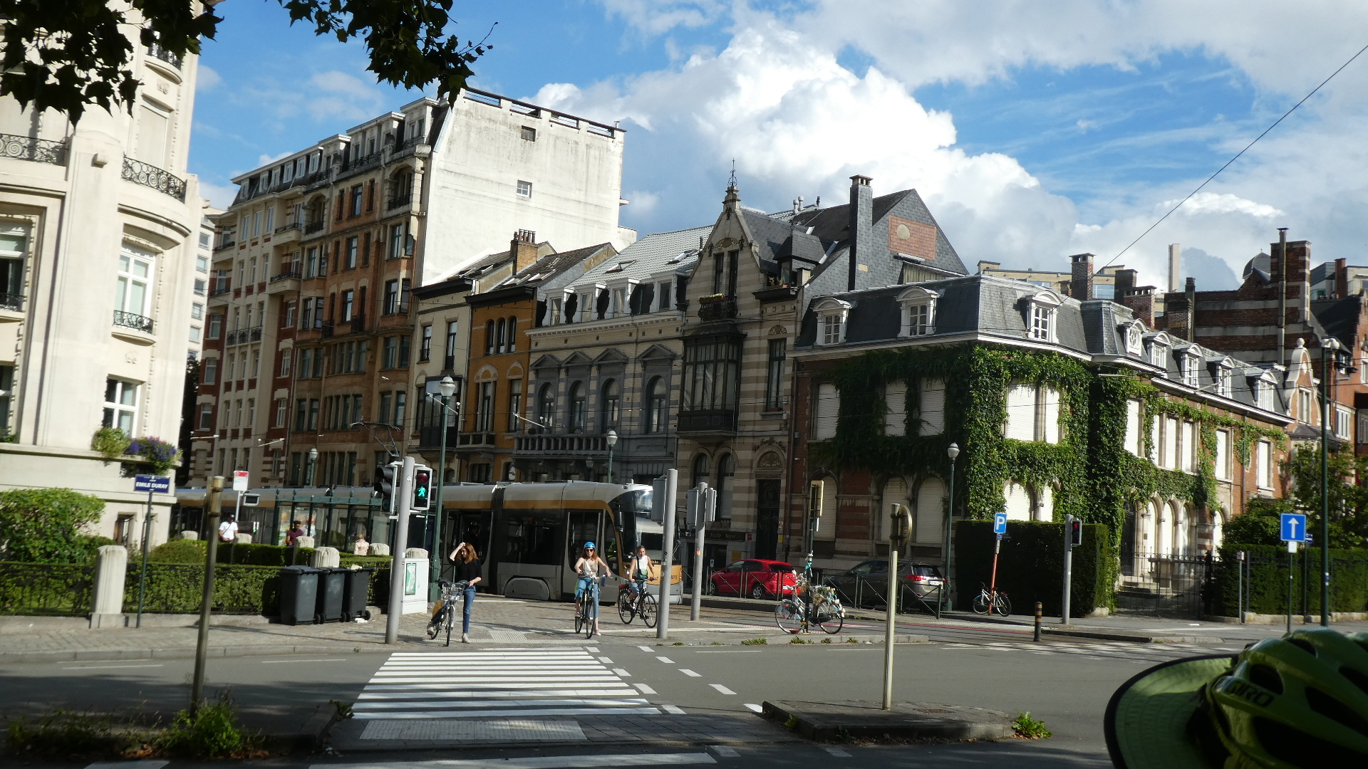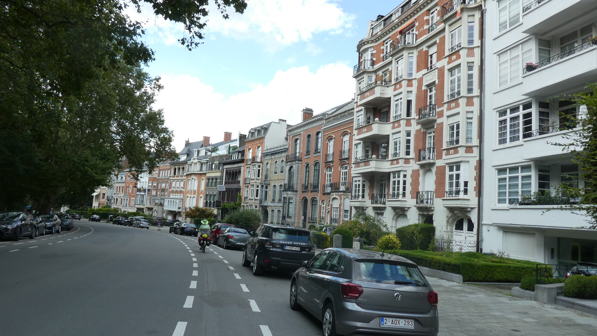 Among the things that kept changing was the nature of the buildings we were passing. The gritty ones along the Meuse were long gone, and we now saw everything from the interesting ones shown below, to pristine clean (but still brick) suburban type houses, to prosperous farm buildings, to elegant little chateau, and finally the super varied buildings of Brussels.