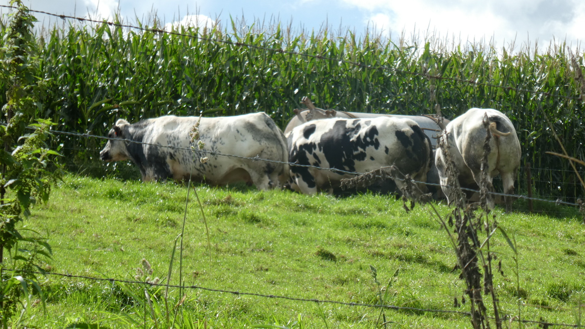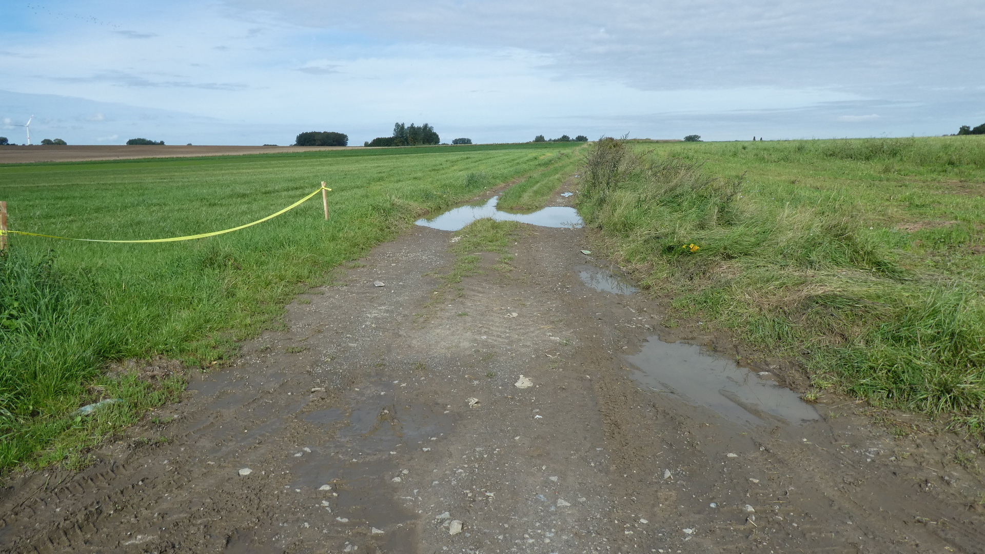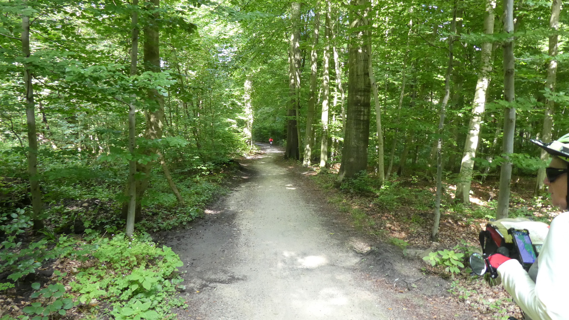 A strange situation cropped up when Dodie declared that she could see a way to save some distance by deviating a bit from the EV 3 route. We did the deviation, and it began by diving into a deep and dark forest, where signs said to turn on your headlights. Then we turned onto a quite busy road, but soon came to a right turn, that Google said was the way to go. But no, the turn just led to a muddy track! We were forced to turn back, but before we were all the way back, Dodie saw another way to go. We took that, but found ourselves in a steeply descending narrow cobblestone road. Only the centre was really safe-ish to cycle, because the road was crowned and the cobbles slippy. Cars behind us, of course, tried to push us a far as possible into the slippy bit. That's the kind of thing that I mean when I say the day sort of took some concentration.