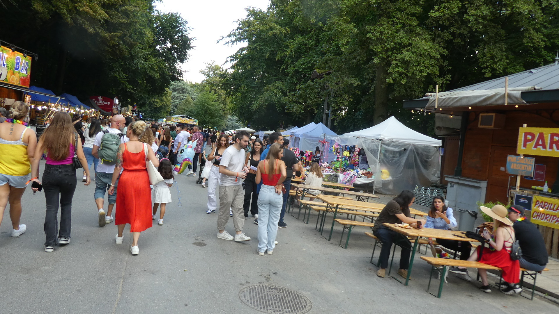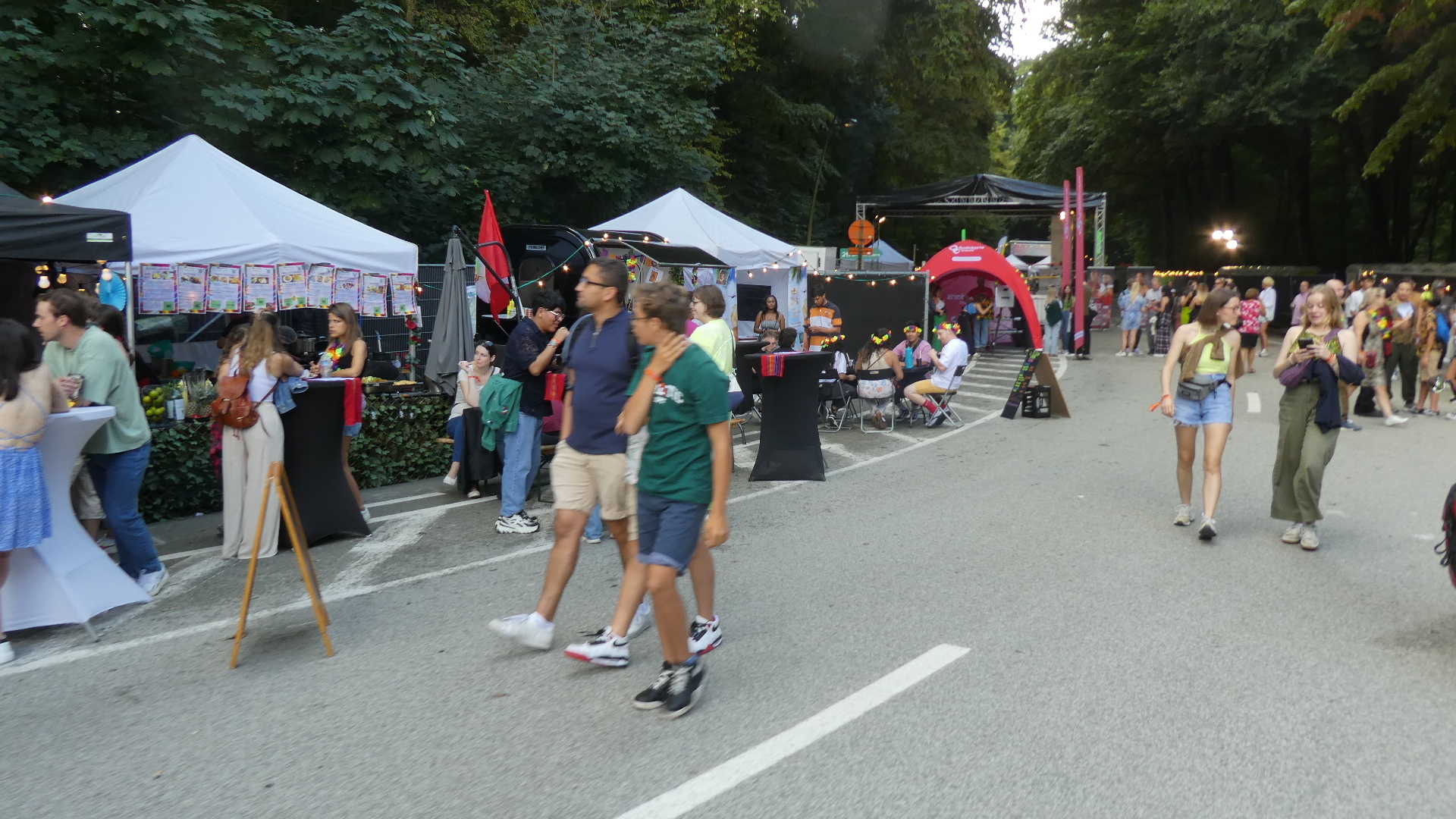 On the far side of Waterloo we were gratified to enter a forested area, which is actually a giant park that is part of Brussels. It was nice at first, but we ran into more and more casual cyclists, down to two year olds, swerving about on the blocked off streets. But things turned really weird when we found that all the streets in the park had been blocked off and filled by a huge fair/festival, with swarms of people and many food and music stalls. Finally we came to a blocked off area, where a security guard barred any further progress for us.