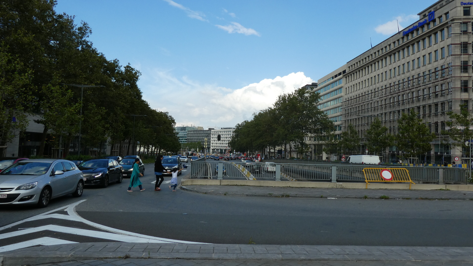 At least that guard thought he was barring any further progress. Little did he know he was encountering the Grampies. Dodie in particular wasn't having any part of it. She demanded to carry on on our way, and she was not taking no for an answer. Finally the guard had to relent, and he opened the gate for us, giving entry into some sort of behind the scenes organizing area. We passed through this and then bullied the next guard into letting us out. This then put us within the main festival. The GPS was helpful there, because all the various roads were covered with people. Finally we made our way to an exit from the whole thing. This was a bit of a shock, because we had been in a forest, then some crazy festival, but then bang, we were in the middle of a standard big city. Just like that, we had arrived to Brussels.
