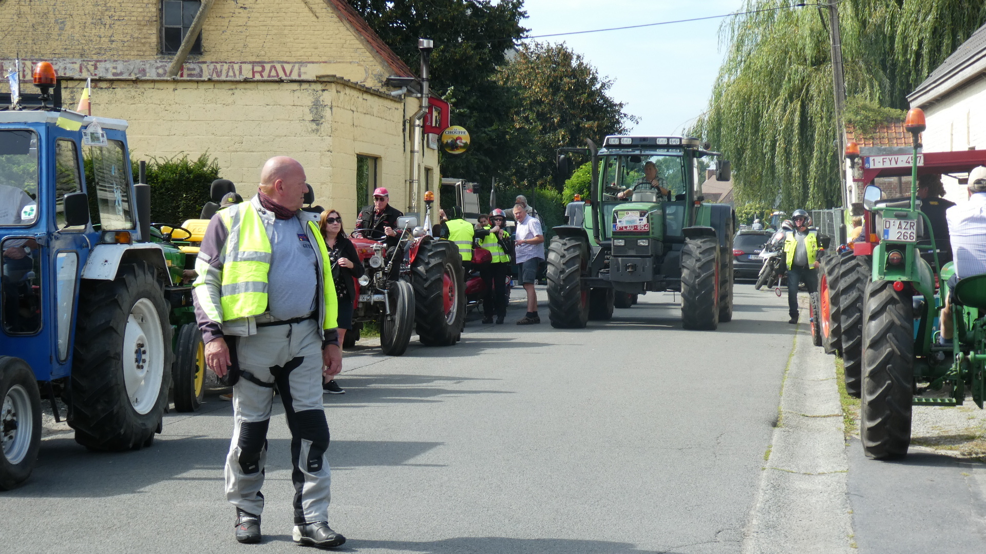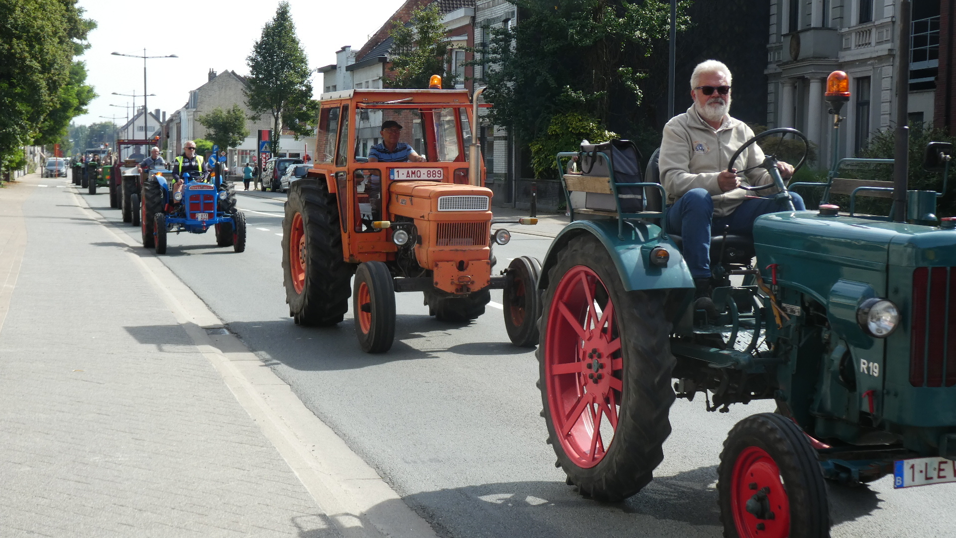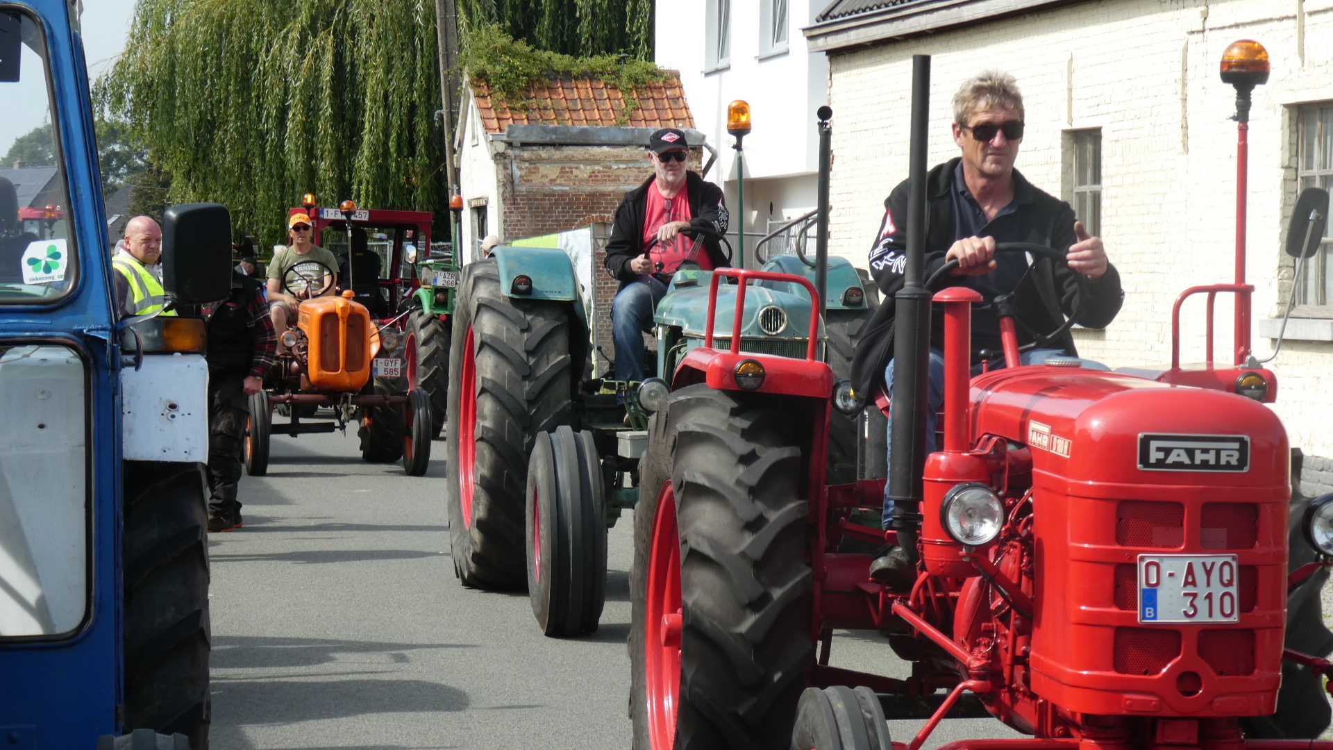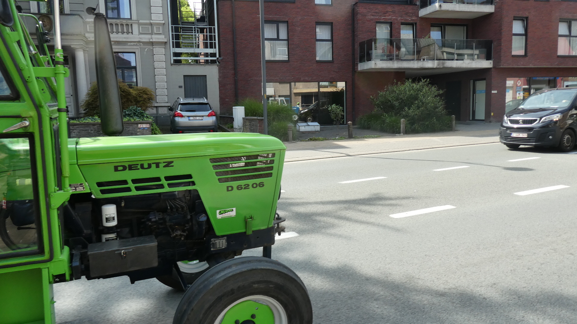At Melle, not far from Ghent, we were stopped at a light when along came one, two, three, many! vintage tractors in a parade. They passed in front of us and proceeded east. Ever aware of wanting to help spot vintage tractors for Ken Graham (spotting tractors often forms part of blogs from Ken and Tricia) we turned and joined the tractors on parade. We expected them to quite quickly land up in a field somewhere, and arrange themselves so we could try to guess which Ken would like to see in a photo. But instead, all the tractors just charged on around the semi-rural roads, with us in hot pursuit. Finally, sort of in the middle of nowhere they all started to stop, turn around, and generally park. Dodie went up to one of the drivers and found that he could speak French. That's how we found that the parade we not ending here, but only stopping for a beer. After that, they were heading off for Laarne, but we did not find out exactly why. Anyway it was fun and since we don't drink, we circled back to where we had started at.