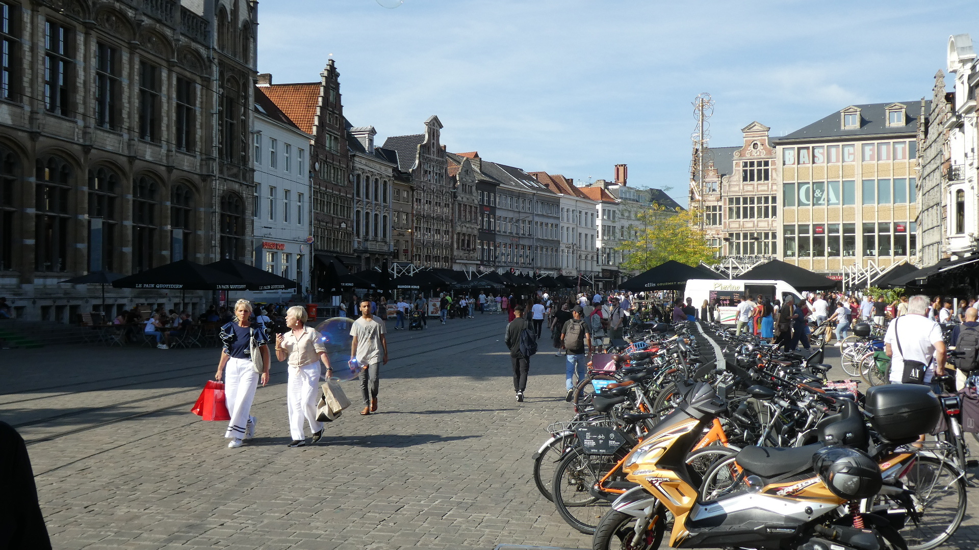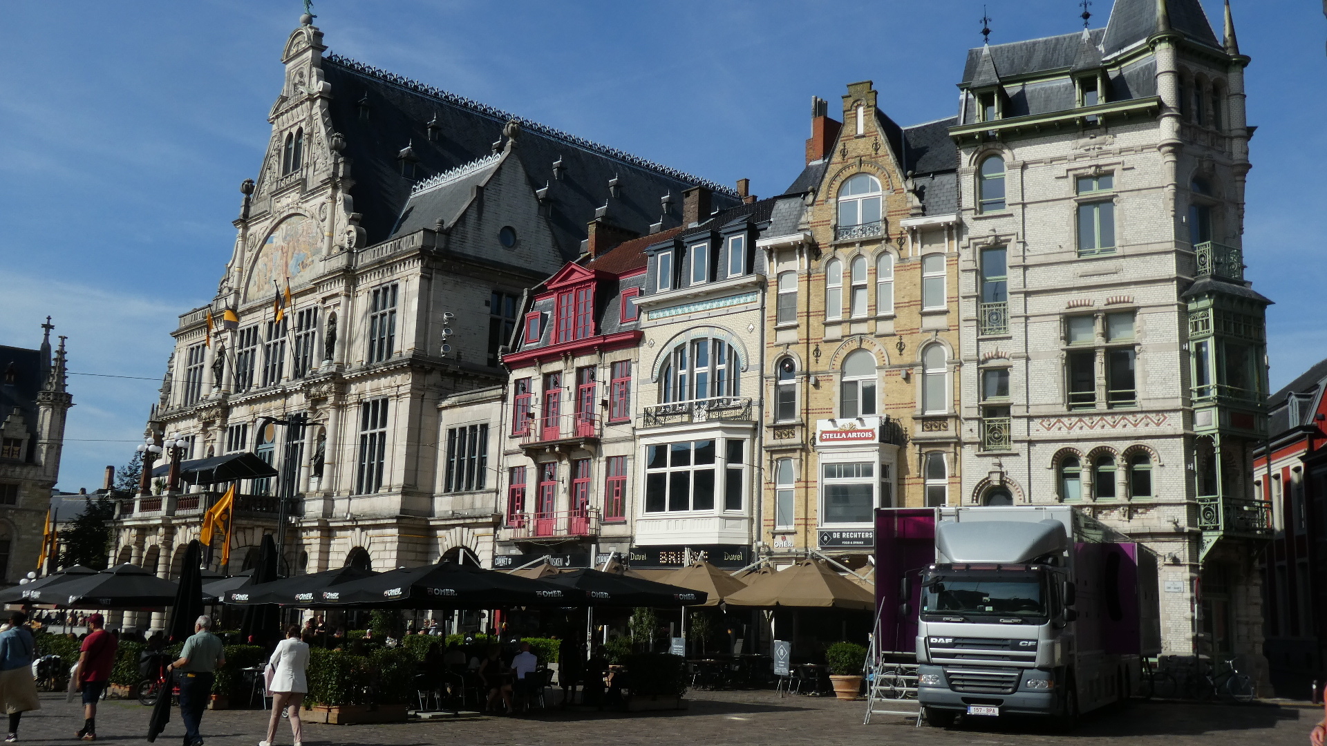 We left town and carried on with the basically straight run to Ghent. Any recollection of gritty buildings near the Meuse were long gone, and now we had all sorts of nice and interesting ones.