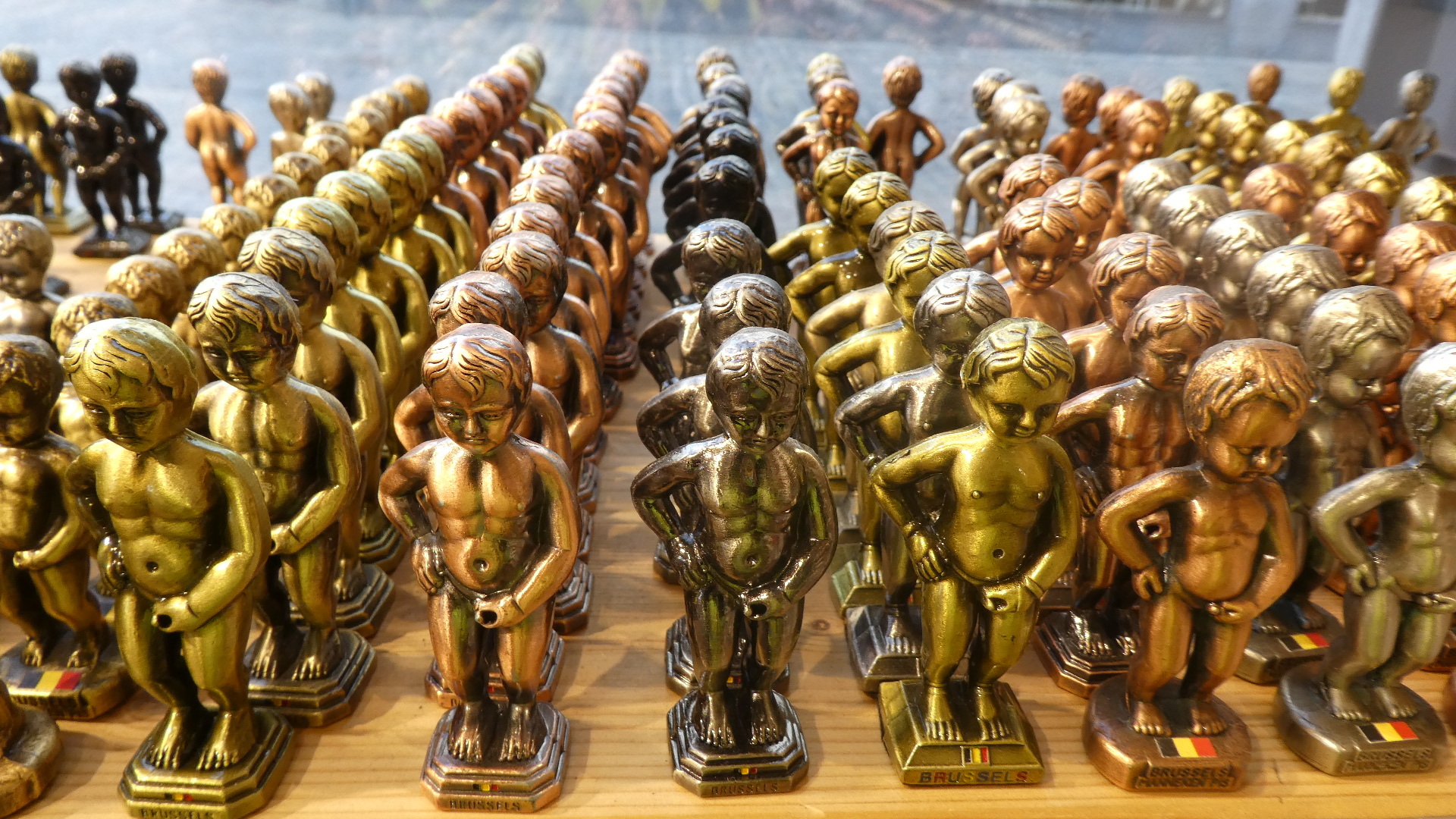 One thing that we did not happen to seek out or fall over this time was the Manneken Pis. This is a small statue-fountain of a little boy, peeing. Despite so many fountains in Europe swarming with naked gods and goddesses, this little one has caught the general imagination and is the unofficial symbol of Brussels.