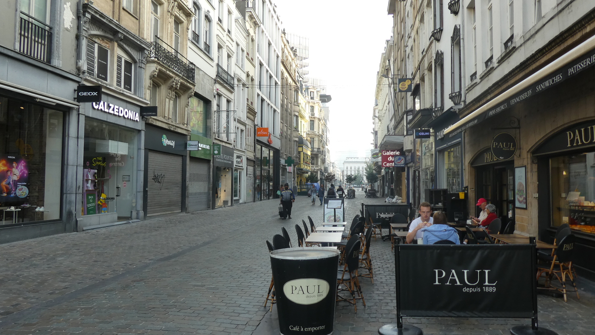 The interesting Brussels architecture is not limited to the Grote Markt. In fact every downtown street is interesting. Here are three images as we began to make our way out of town. Admittedly it was a Sunday morning, but there are no cars in the shots!