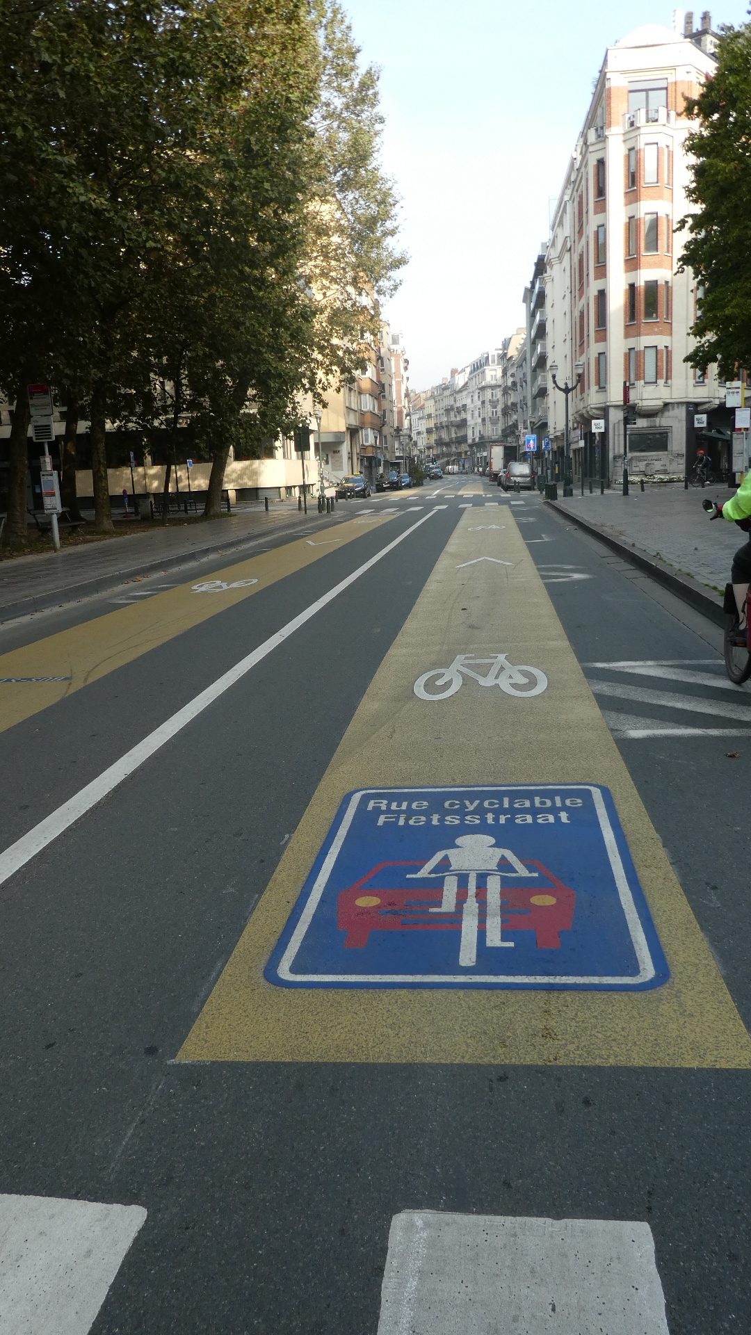 We started, of course, in Brussels. Getting around in the city is ridiculously easy, with every street of significance boasting a marked bike lane. And in some cases they really get serious. Look at this one: