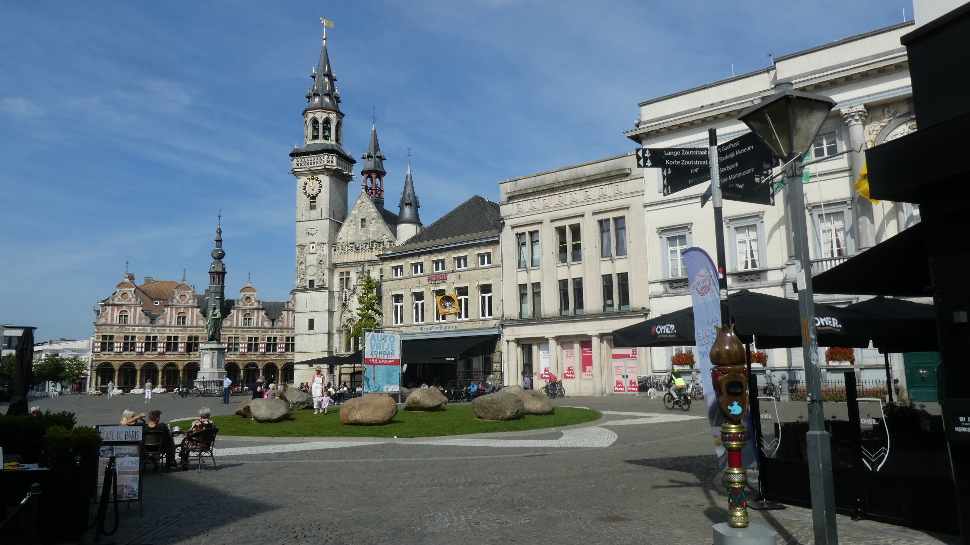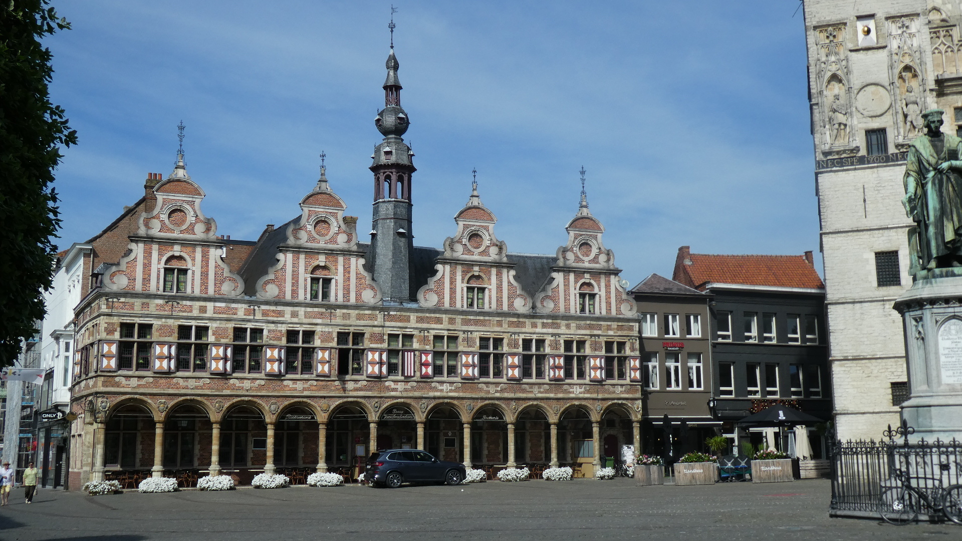 I would like to say that our experience of finding the Grote Markt in Brussels had alerted us to looking for such things in towns along our way. But as we approached Aalst at about mid-day, it was actually McDonald's that helped us out. On the highway they had a sign indicating that they could be found in the Grote Markt, Aalst. "Hey, there is a Grote Markt in Aalst!" was my erudite conclusion. Dodie responded by routing us in. Otherwise we would have missed it.