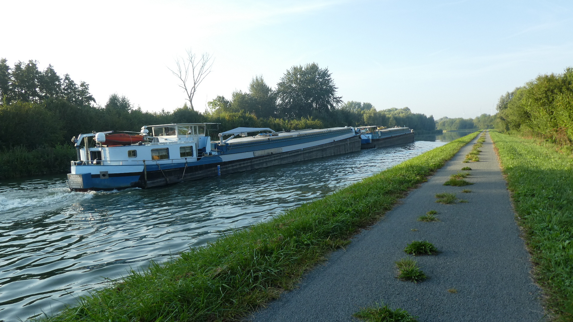 We set off once more along the Somme, or at least a canalised version of it, and immediately dove in to the main fun activities on offer. The first is the often frustrating sport of racing barges. It's frustrating, because we are about evenly matched with barges in terms of basic speed. But we stop, to look at birds, drink hot chocolate, or talk to people along the way, while the barges just keep barging on.