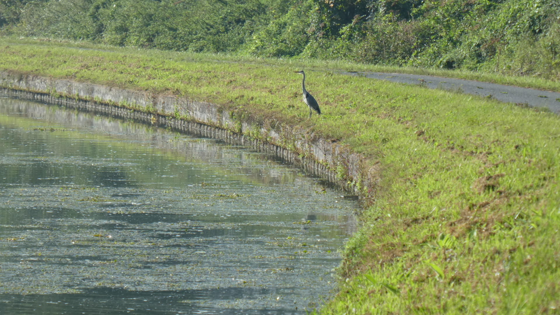 Another activity was testing the hearing or general alertness of herons. All along the canal they were standing by the shore, presumably emulating the French fishermen, watching for fish. As we would approach, we assume they first heard the crunch of our wheels on the gravel, and they would fly away before we were about 300 feet away. The game was to find the more and the less alert ones.