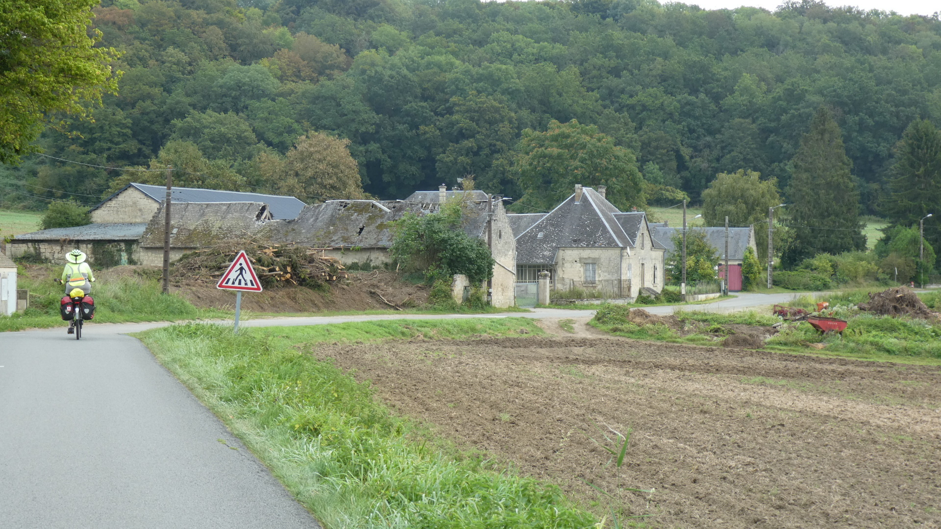 Meanwhile for a small project I went to bring our recharged ebike batteries down to the bikes, which had been safely stowed in a suite of rooms that are part of the building. I found their door locked, and it would not be opened by any of the three keys the owner had left with us. I had to phone the man, quite late in the evening, and it turned out he had inadvertently locked us out from the bikes. Without that Reims project giving me time to go visit the bikes, we would have been going nowhere this morning!