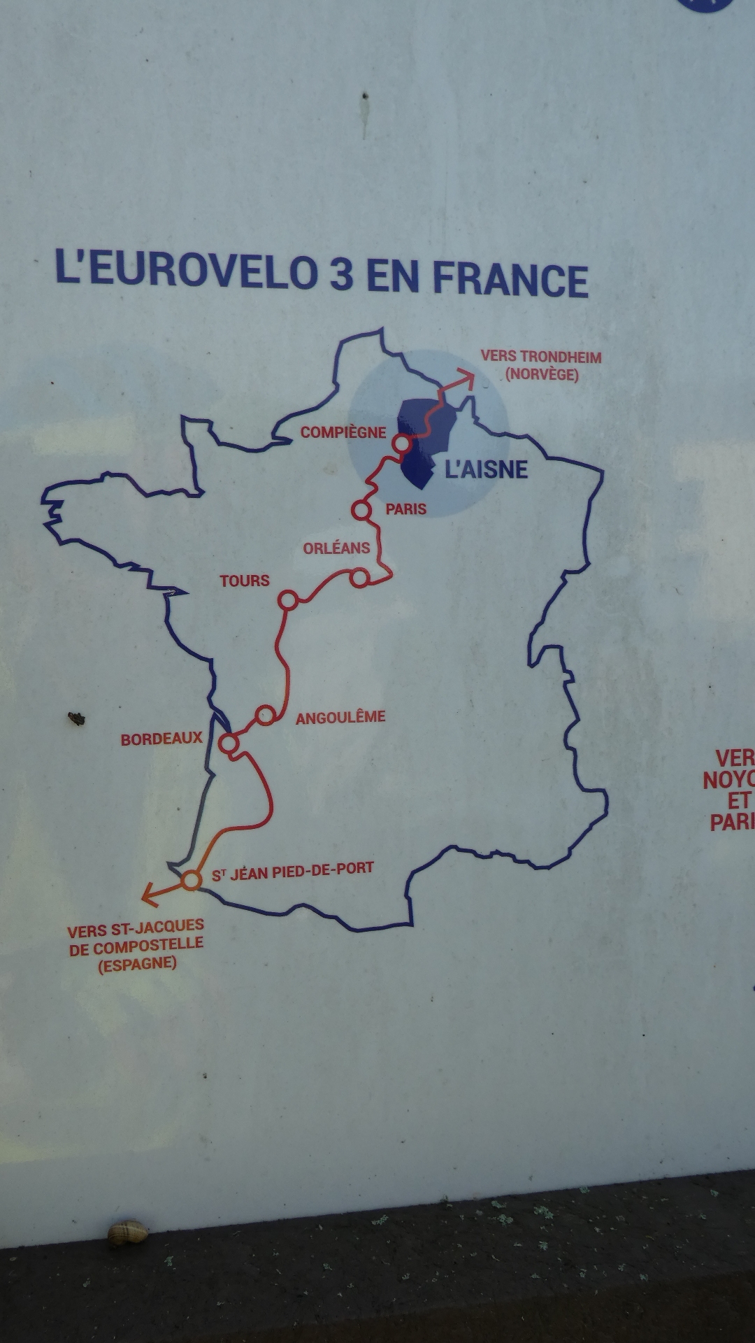 As we set out we again found ourselves not only following a canal, but also on EV 3. This makes sense, because as the Pilgrim Route it is heading for Spain, and so are we!