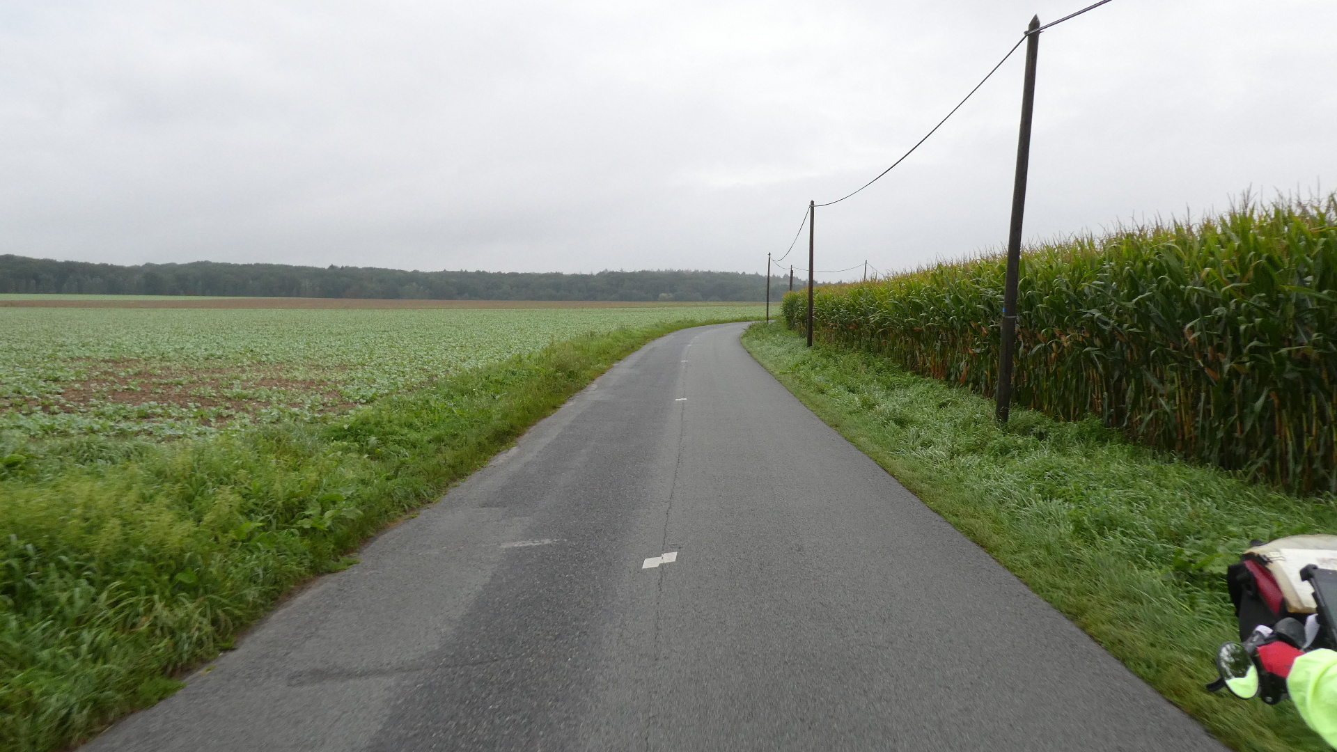The only thing about the straight shot was that the path fell to pieces and became a farm field. We frantically searched the GPS for a way out, but no. So we got to ride 6 km in the mud. Good thing it was not raining like yesterday!