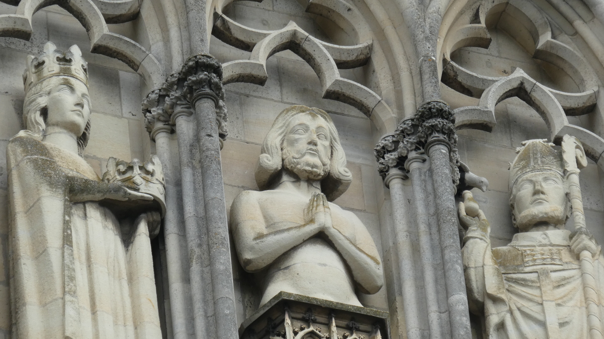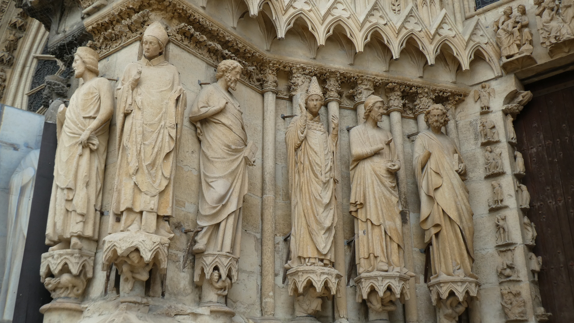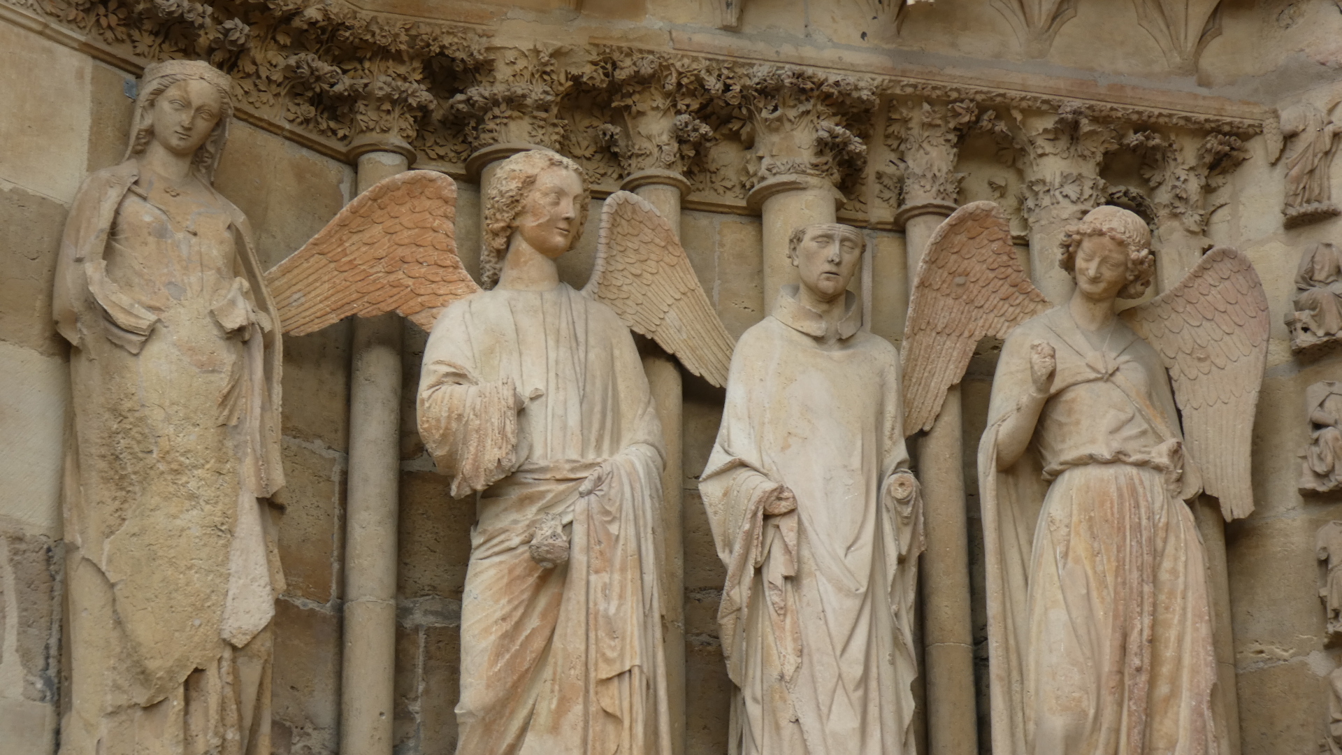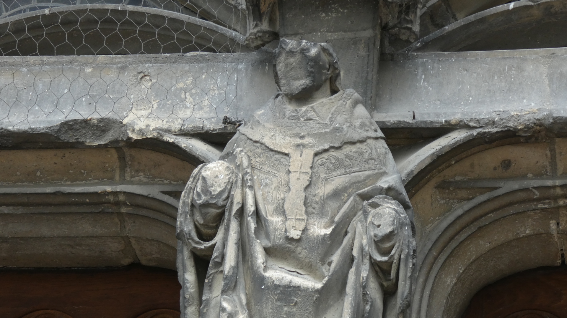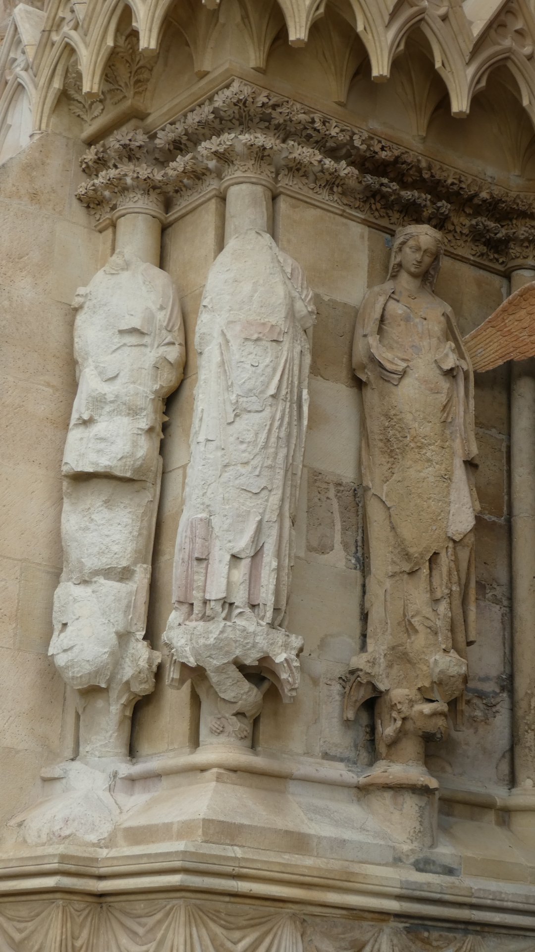 Taking time to examine all those exterior statues a bit more, we see some of the incredible detail. There are also examples of extreme restoration, and cases where restoration must have been impossible.