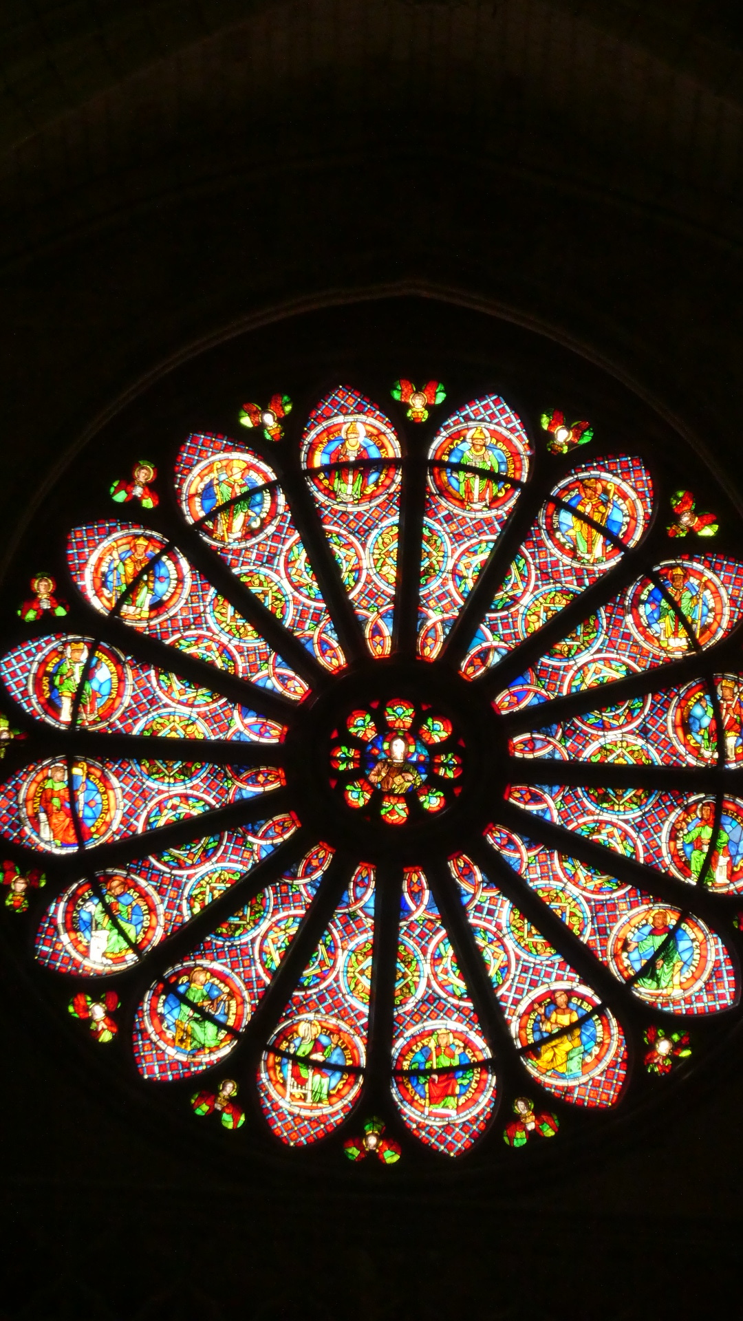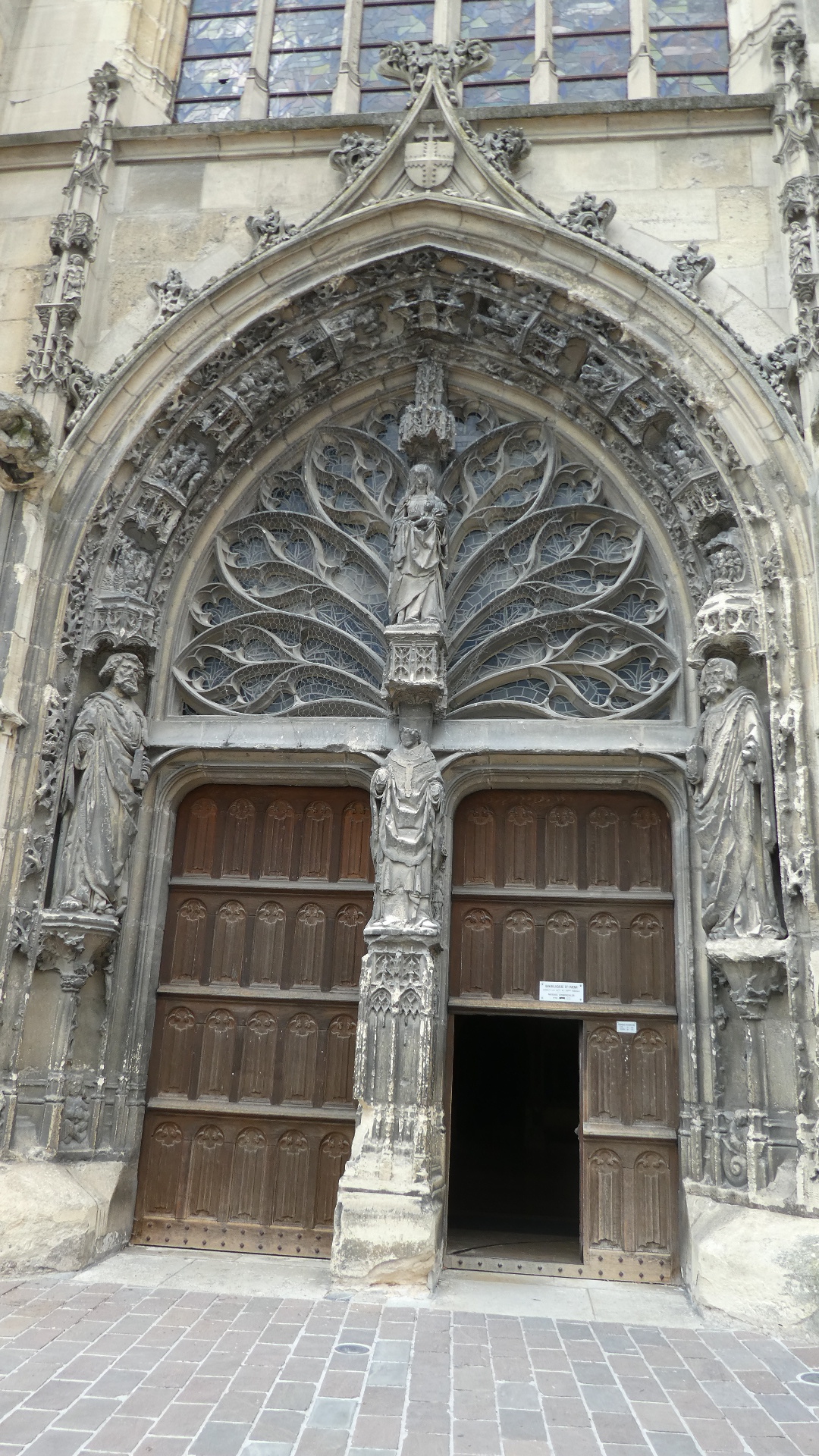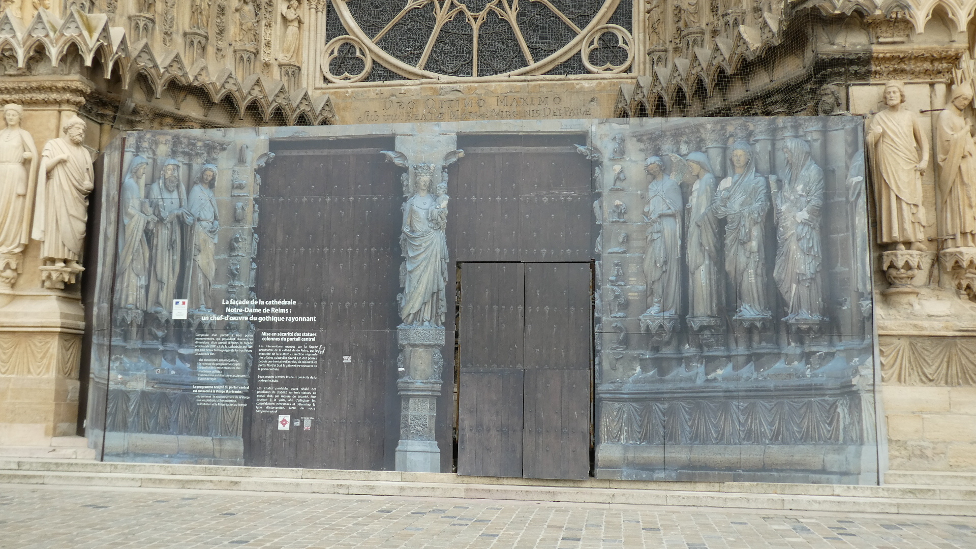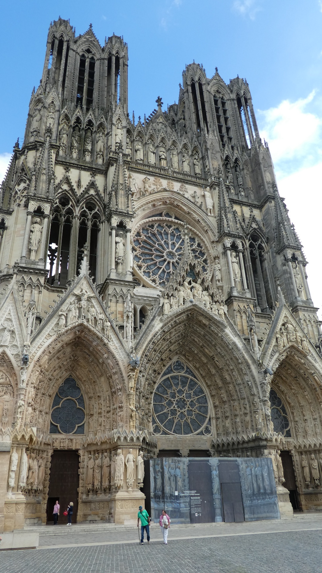 Reims cathedral has been the site of numerous coronations. For example in a really famous one, in 1429 Charles VII was crowned here, in the presence of Joan of Arc. But the one most mentioned (in town tourist literature or posters) is the baptising of 15 year old Clovis, King of the Francs, by Bishop (Saint) Remi, in about 496. The spot for that is marked by a plaque in the floor: