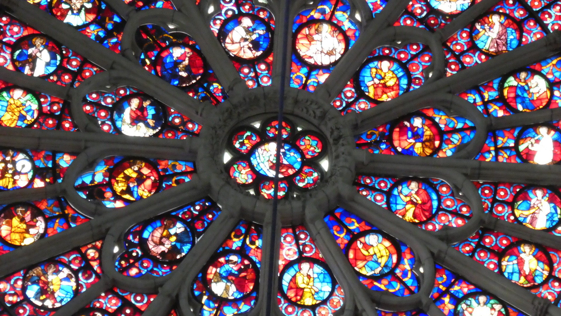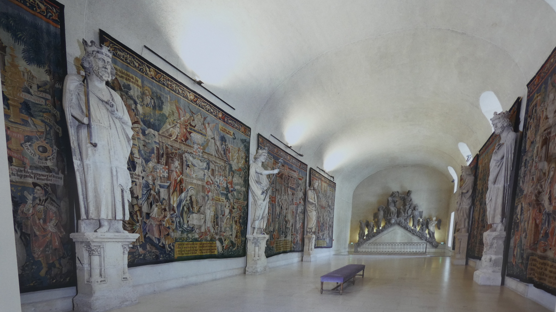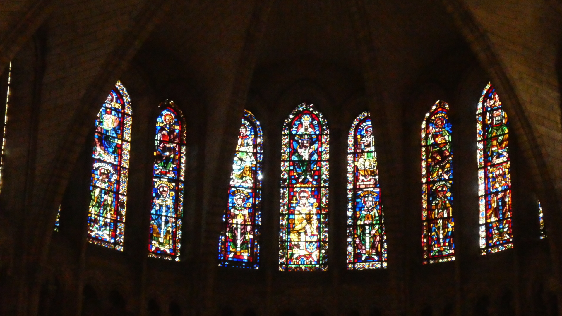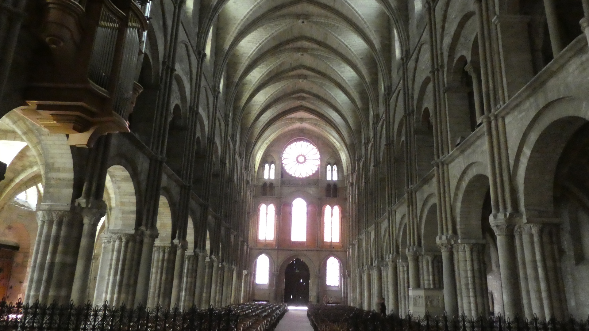 Inside the cathedral another very notable thing is the stained glass work at either end. There are two large rose windows, one from the 13th century and one from 1937, and at the altar end, some major pieces by Marc Chagall (from 1974). We have seen Chagall in other churches too - he likes blue a lot!