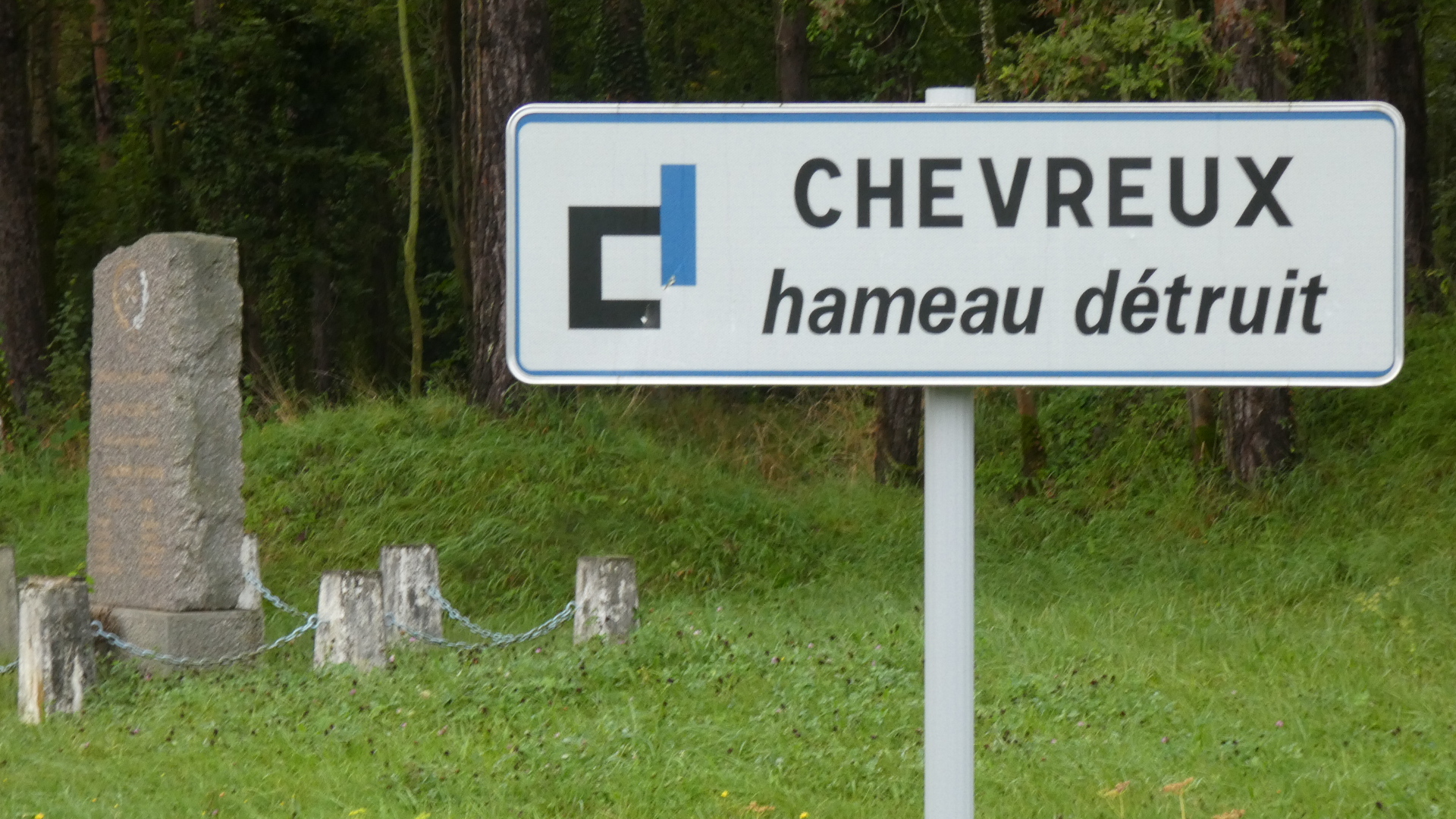 As we rolled along, we came to memorials of villages either totally destroyed, or so damaged that even as of today they have not really recovered. The panel below is included not for us to try to read it, but only to show all the information by the roadside that passing cyclists might try to absorb.