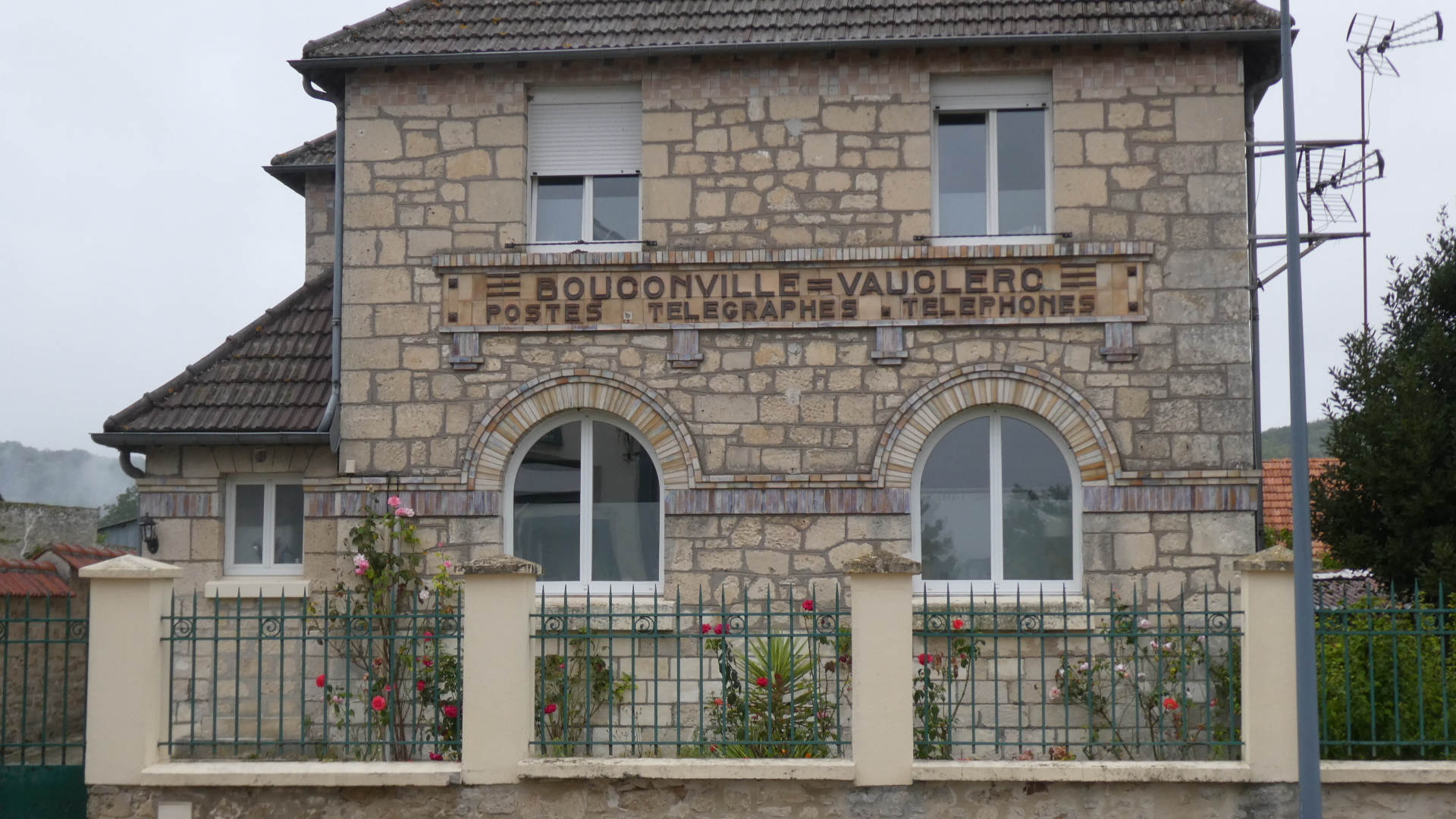 The second linguistic thing came up as Dodie found she had time to check the blog for my usual egregious typos and spelling errors, and gross misrepresentations. Usually I only have the strength to sort of get the words down, but not to check them. This time, Dodie's first detection was that I had spelled the name of the town we were at Vauclair. But from our window, the post office building could be seen, and on the front Dodie made out Vaucler. Accordingly she changed the blog spelling. But when she sent the blog live, wham! in came an email from my brother, pointing out that we are at Vauclair, according to our included map. Dodie picked up the email, and changed it back. All this happened when I was already asleep. But in the morning I went out to look at the post office. As you see it says not Vauclair nor Vaucler but Vauclerc! I asked Natacha how the various changes had come about, and she said she would check with a village elder and let us know. It's a minor point, but let it not be said that we ignore incoming emails, and we appreciate the readership paying close attention, even if it does have to be my own brother!