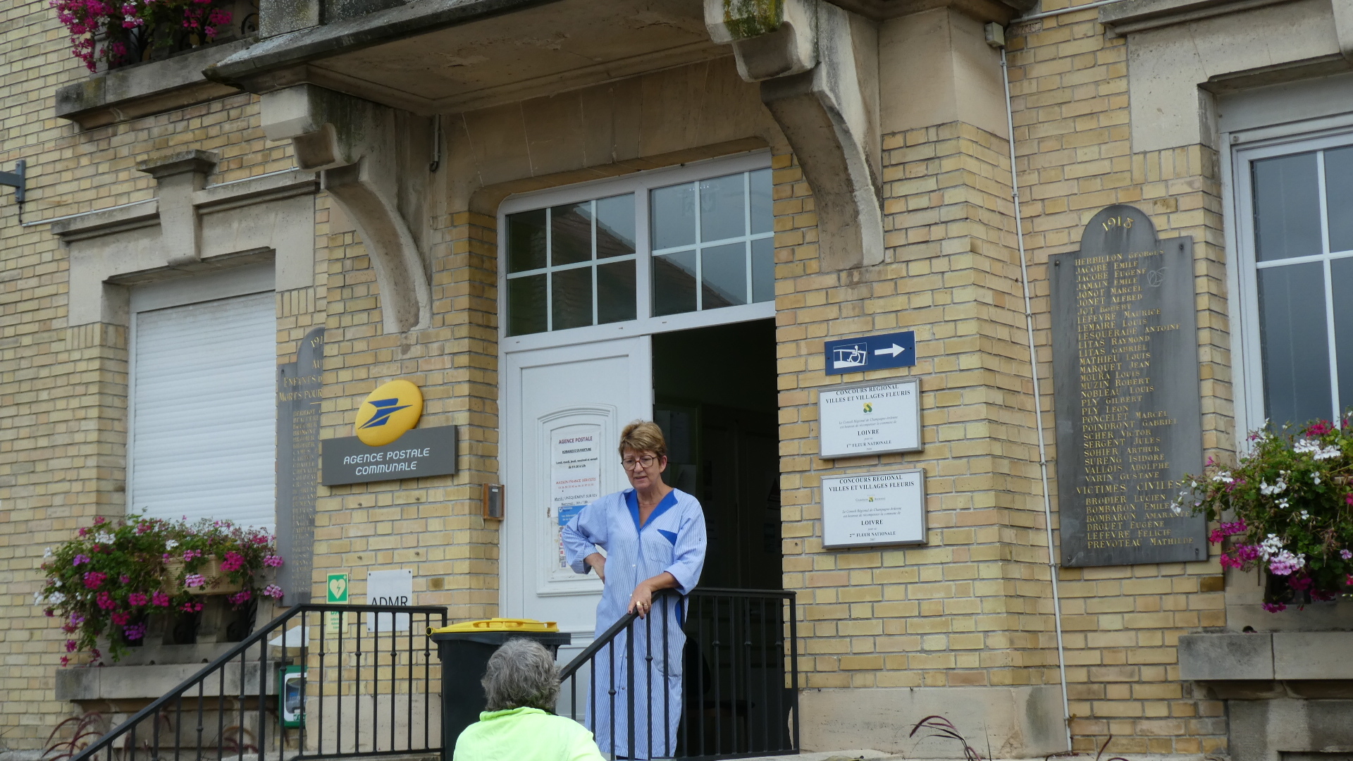 Another tough situation came up in Dodie's endless quest to find post offices in various countries. Yesterday we had searched out one that turned out to be closed 12-1:30 for lunch, and then in the next town the hours were 8-12 only. Today we carefully landed in a town at 10:30 so what could go wrong? Closed on Wednesday! Haha. In the photo, the postal lady is busy explaining/justifying. Despite appearances, she was actually quite nice.
