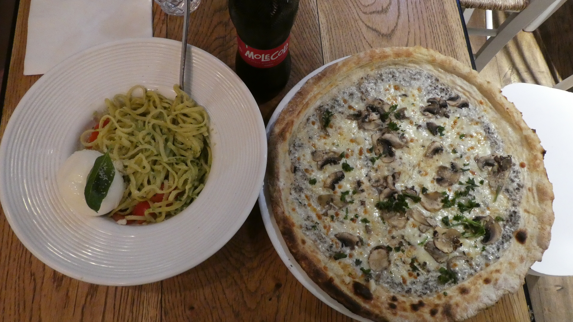 We broke with tradition and went out into the commercial area to find supper. We settled on an Italian place, claiming to bring authentic cuisine from Calabria. The pasta was ok, but the pizza crust too thin, making it like cardboard.