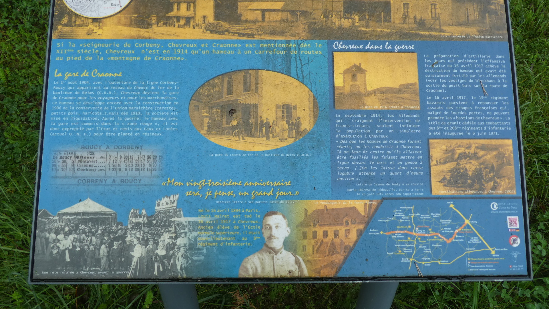 Craonne was another of the affected villages. It was almost wiped out. After the war a new city hall was built, but at a size that reflected anticipated recovery. This never happened. My random snap below does show a few of the buildings that are there now.