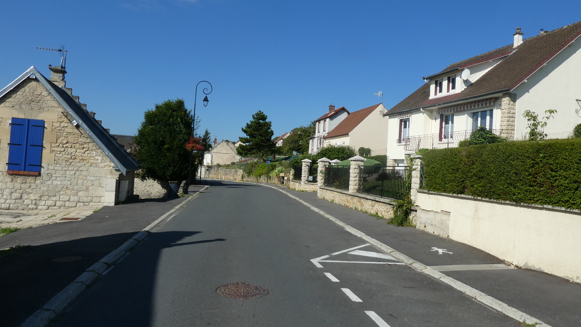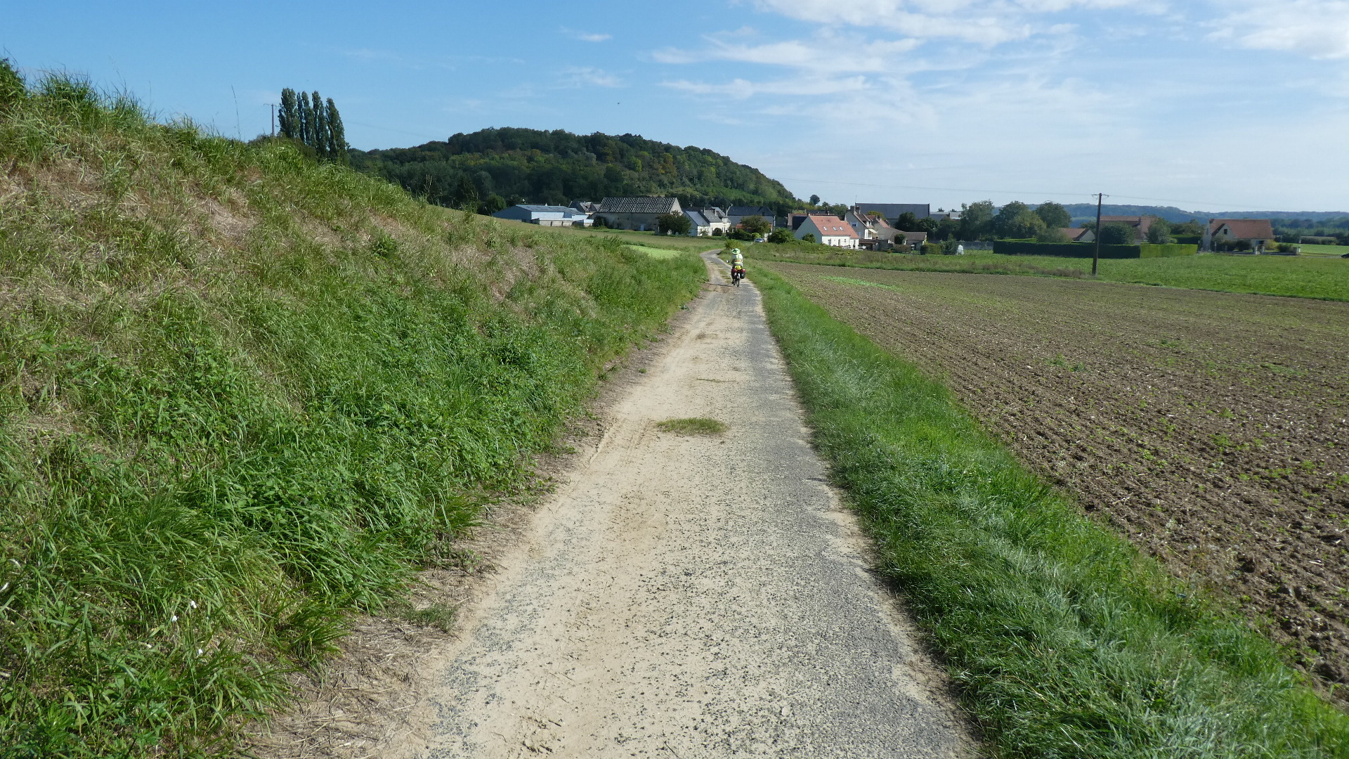Now it was time to embark on the 50 or so km run from Soissons to Compiegne. It's kind of a straight run along the river, except that one is seldom right by the river, and there are in fact quite a few twists and turns. But the run could be written up as some special cycling fun, because one passes through a whole series of really cute villages, where the houses are commonly made of stone. In between are farm fields - it's just a lovely ride.