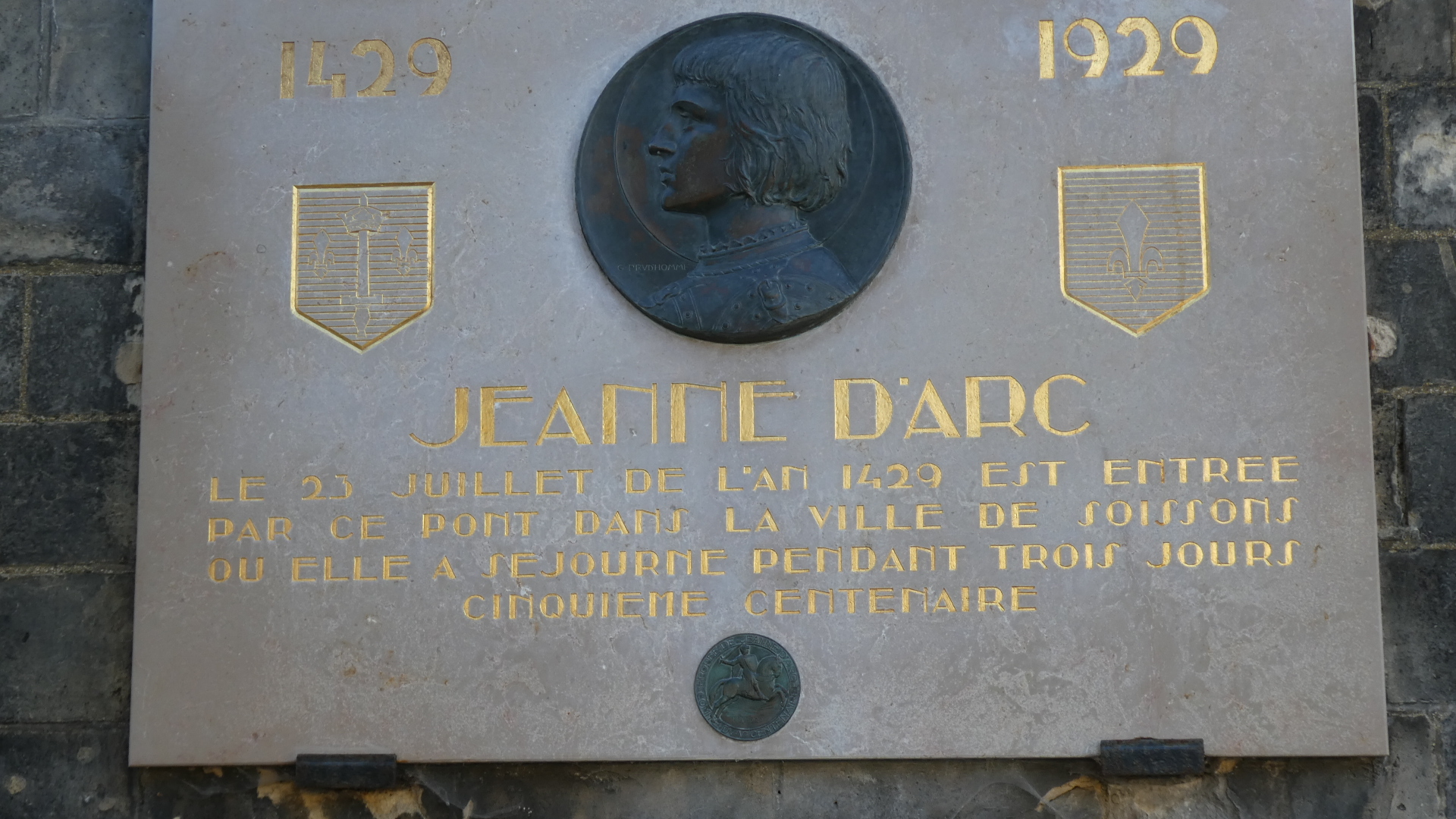 Jeanne d'Arc was seemingly everywhere in France, and she is so popular. Here in Soissons is a Jeanne d'Arc was here plaque. It says she spent three days, which is more than we can say! On the other hand, if anyone wants to put up a "Grampies Slept Here" plaque, go for it!