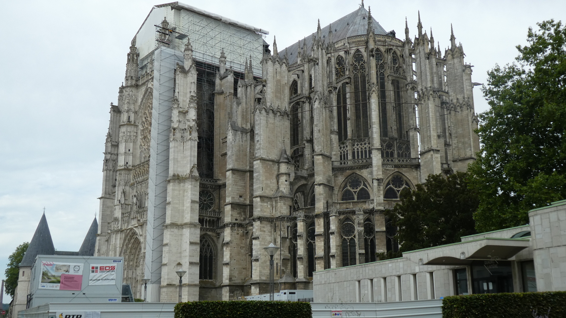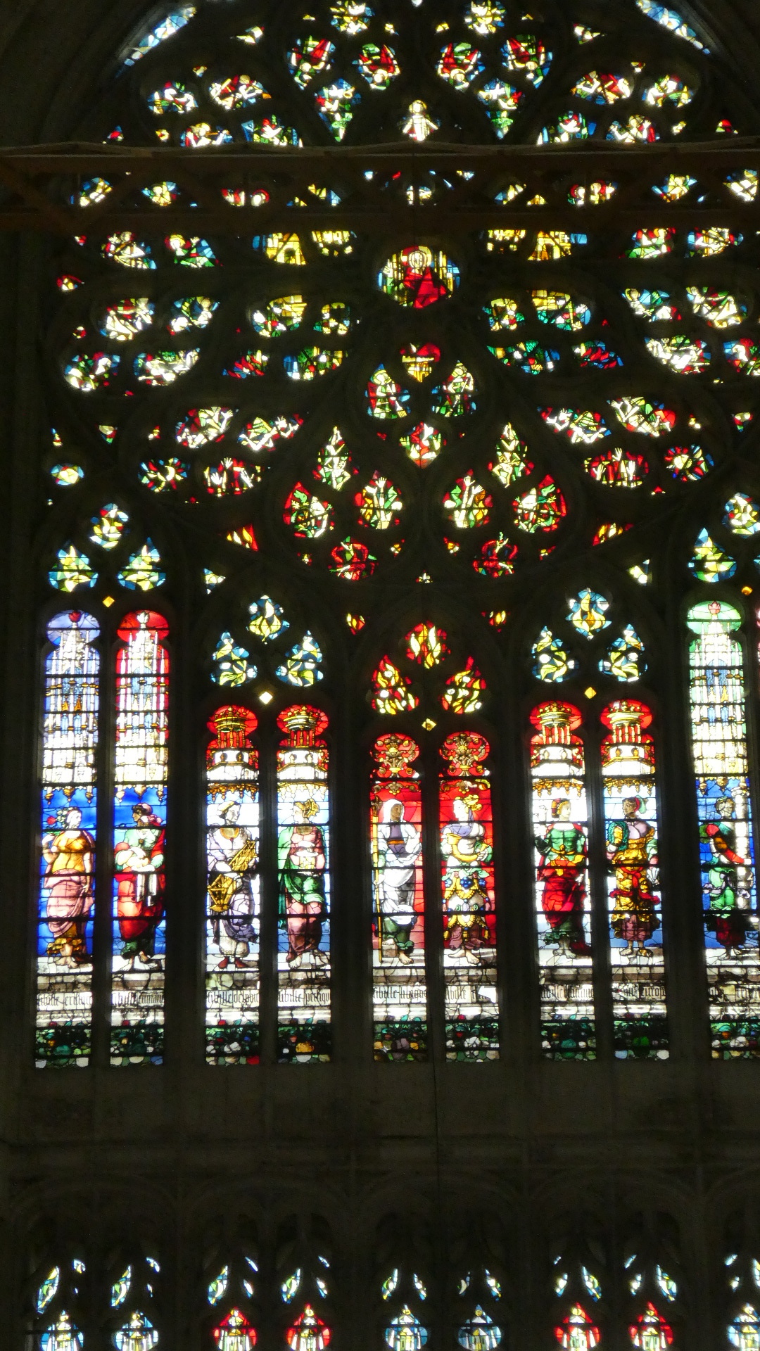 Beauvais cathedral has several great things to look at. The stained glass is extremely beautiful. There is a very fancy astronomical clock. And there are attractive cloisters, and art exhibitions in the crypt.