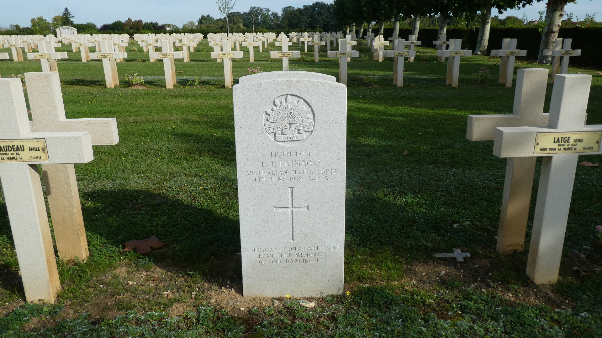 We had rather hoped that we were done with military cemeteries, but no. At Catenoy there was another one. We noticed some differently shaped stones among the crosses and had a look. They were Australian and British. It seemed all had died in 1915. We don't know enough to guess what part of the battles had filled this cemetery.