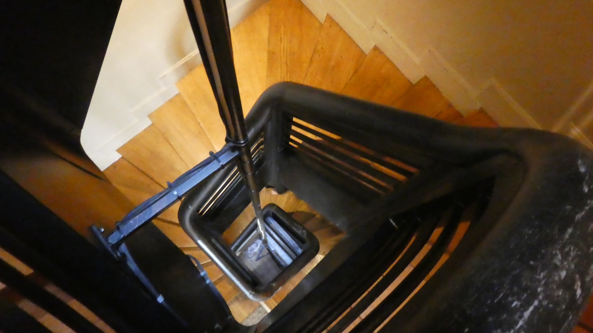 To be fair, the kitchen for the restaurant was on the first floor, up the spiral stairs of death. The waiters needed to run up and down those stairs, not only to pick up the food but also to return the dirty dishes. I think 15:00 is when the kitchen closes, so the lady would want to keep the stairs of death clear of struggling Grampies before then. But what happened was that Mr. directed two of those athletic waiters, plus himself, to grab the bikes and whisk them up, like so many dirty dishes. It was all over in seconds.
