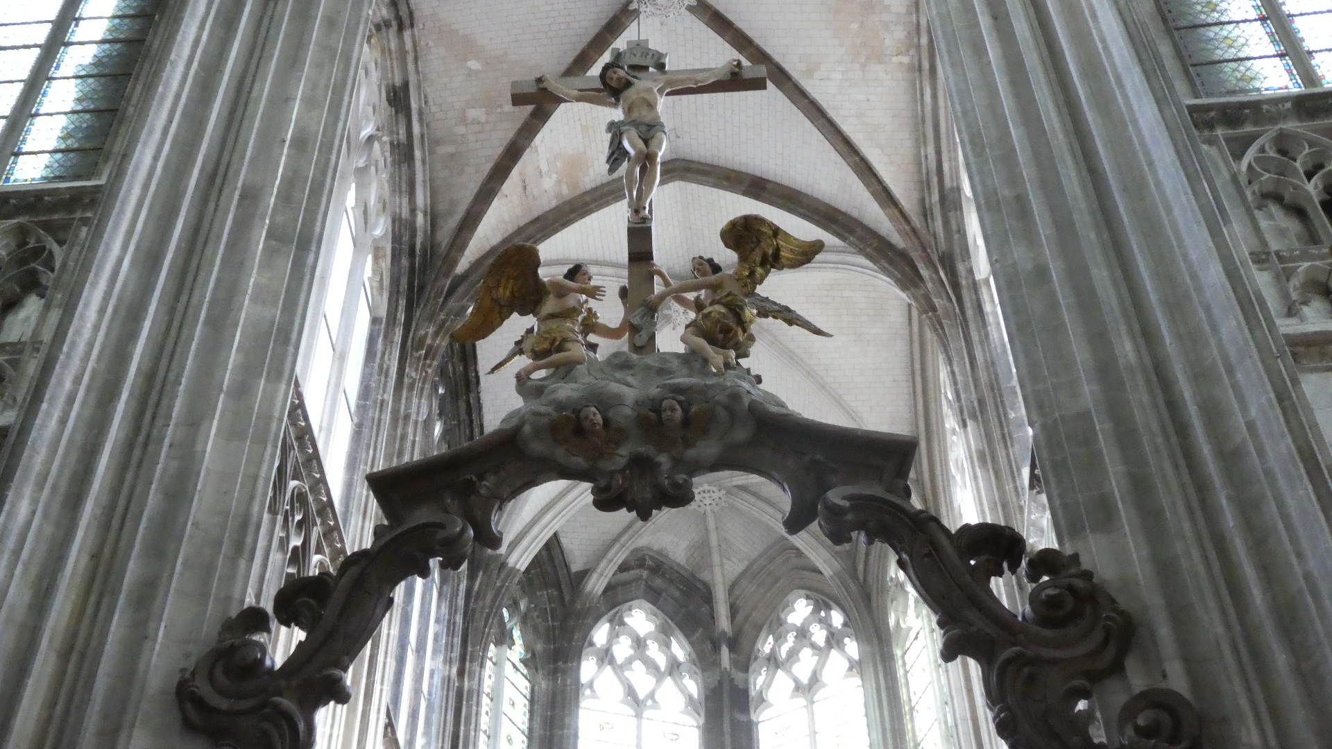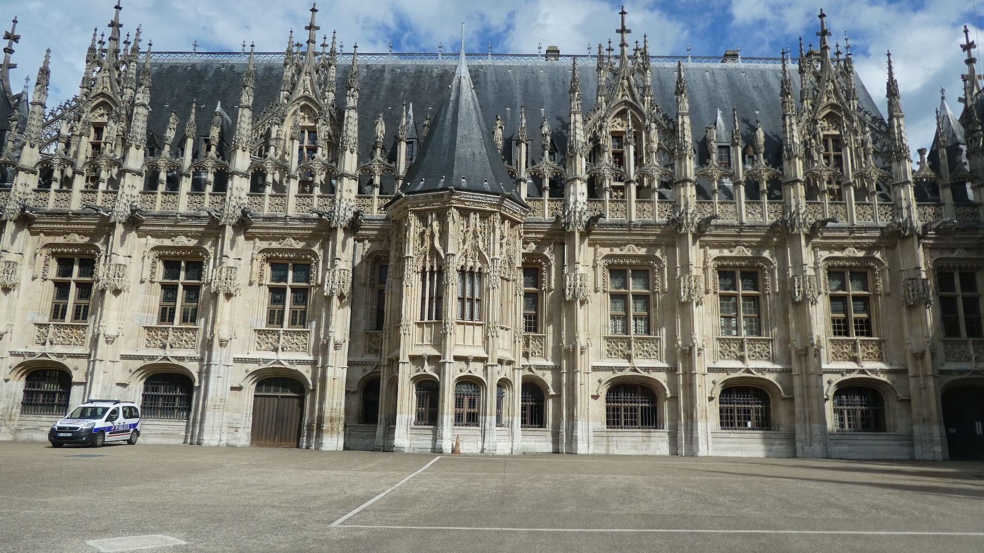 Finally, on the Rue aux Juifs we came to what, again, was not the cathedral, but was still very fancy gothic architecture. This turned out to be the Palais du Justice (court house), from around 1500. Interestingly the place had been heavily damaged in WWI, and subsequent excavations revealed it had been built on top of some sort of synagogue. Hence the name of the street.